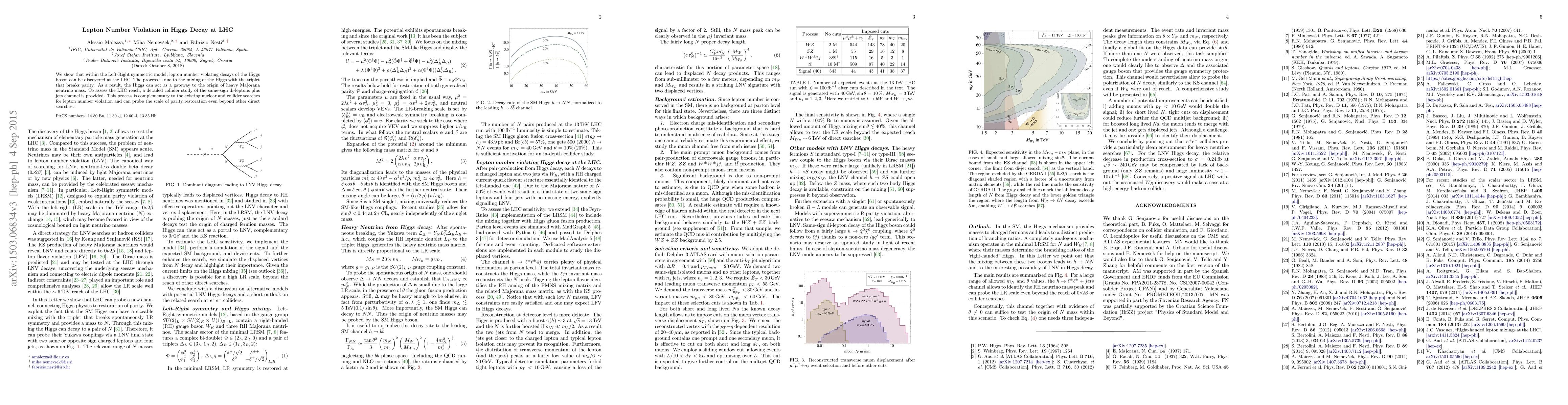 This paper demonstrates that within the Left-Right symmetric model, lepton number violation in Higgs decay can be detected at the LHC through the mixing of the Higgs with a parity-breaking triplet, potentially revealing the origin of heavy Majorana neutrino mass. A detailed collider study of the same-sign di-leptons plus jets channel is provided to assess the LHC's capability to discover this phenomenon.
