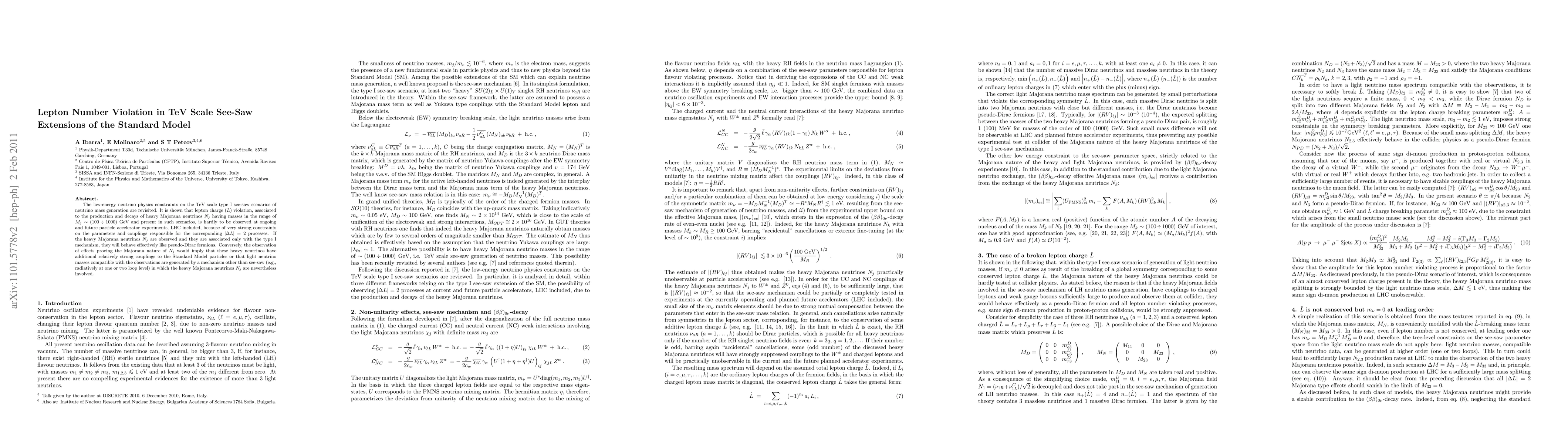The low-energy neutrino physics constraints on the TeV scale type I see-saw scenarios of neutrino mass generation are revisited. It is shown that lepton charge (L) violation, associated to the production and decays of heavy Majorana neutrinos N_{j} having masses in the range of M_j \sim (100 \div 1000) GeV and present in such scenarios, is hardly to be observed at ongoing and future particle accelerator experiments, LHC included, because of very strong constraints on the parameters and couplings responsible for the corresponding |\Delta L| = 2 processes. If the heavy Majorana neutrinos N_j are observed and they are associated only with the type I mechanism, they will behave effectively like pseudo-Dirac fermions. Conversely, the observation of effects proving the Majorana nature of N_j would imply that these heavy neutrinos have additional relatively strong couplings to the Standard Model particles or that light neutrino masses compatible with the observations are generated by a mechanism other than see-saw (e.g., radiatively at one or two loop level) in which the heavy Majorana neutrinos N_j are nevertheless involved.
