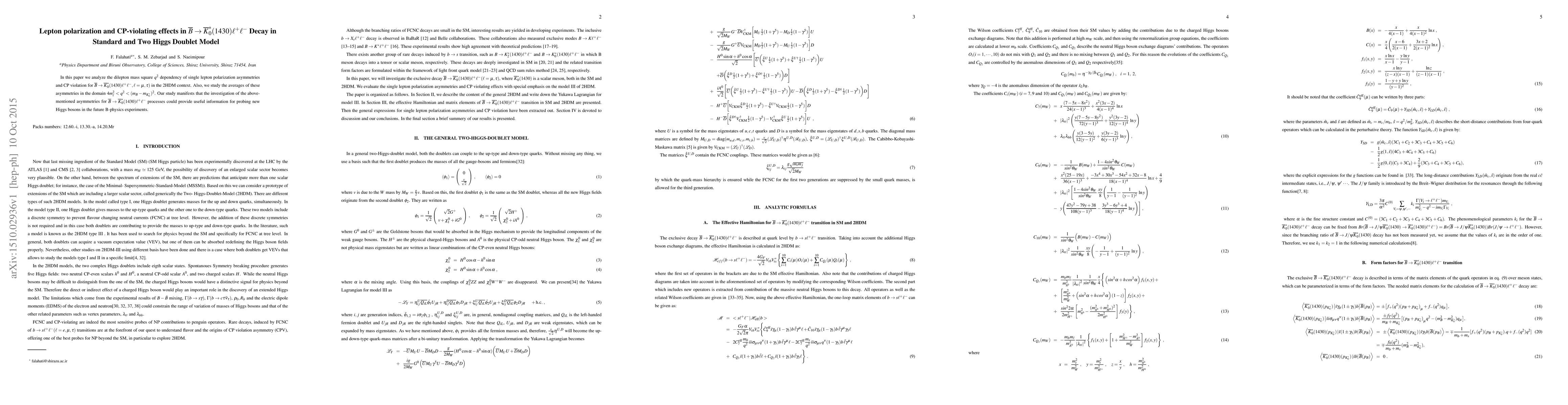 This paper investigates the lepton polarization asymmetries and CP-violating effects in $\overline{B}\rightarrow \overline{K}_0^*(1430) \ell^+\ell^-$ decays within the Standard Model and the Two Higgs Doublet Model (2HDM). The study finds that these asymmetries could offer insights into new Higgs bosons in future B-physics experiments.