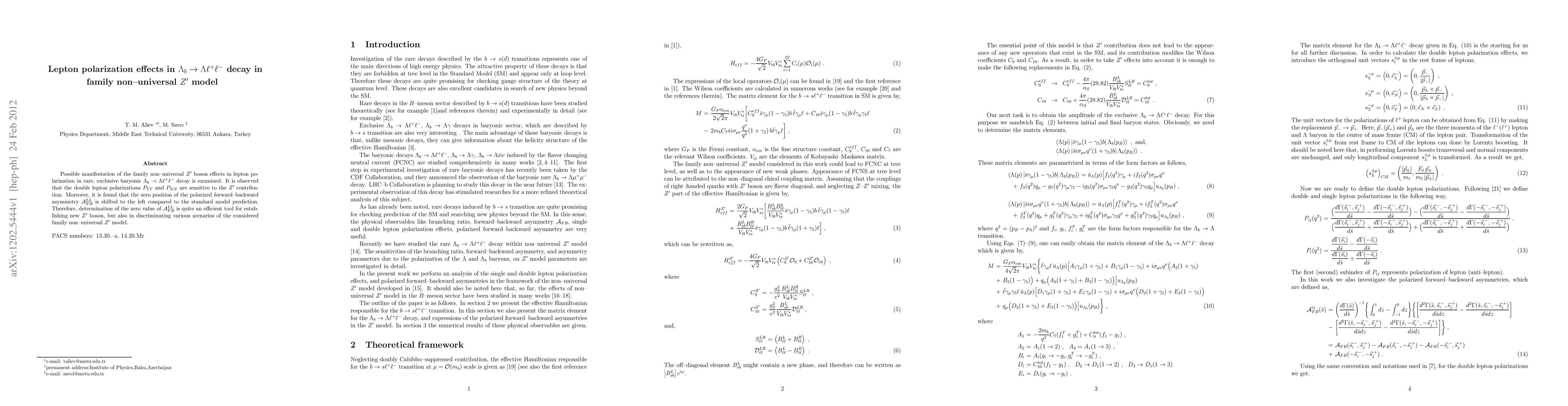 Possible manifestation of the family non-universal Z' boson effects in lepton polarization in rare, exclusive baryonic "Lambda_b -> Lambda l+l-" decay is examined. It is observed that the double lepton polarizations P_TT and P_NN are sensitive to the Z' contribution. Moreover, it is found that the zero position of the polarized forward-backward asymmetry A_FB^LL is shifted to the left compared to the standard model prediction. Therefore, determination of the zero value of A_FB^LL is quite an efficient tool for establishing new Z' boson, but also in discriminating various scenarios of the considered family non-universal Z' model.