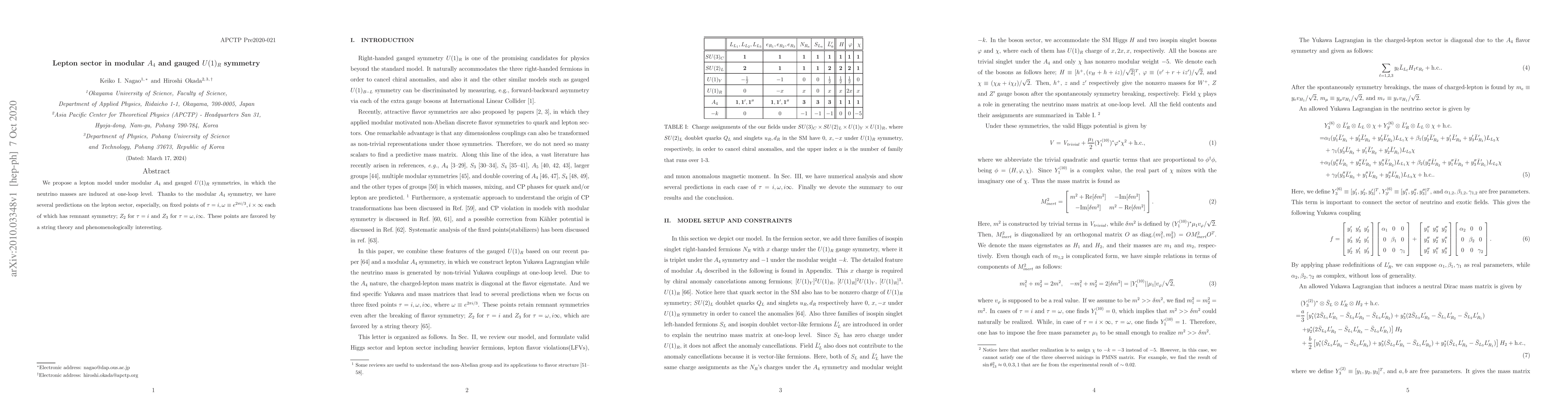 This research proposes a lepton model utilizing modular $A_4$ and gauged $U(1)_R$ symmetries, with neutrino masses generated at the one-loop level. The model predicts specific remnant symmetries at fixed points, $Z_2$ for $\tau=i$ and $Z_3$ for $\tau=\omega$ and $i\infty$, which are phenomenologically significant.