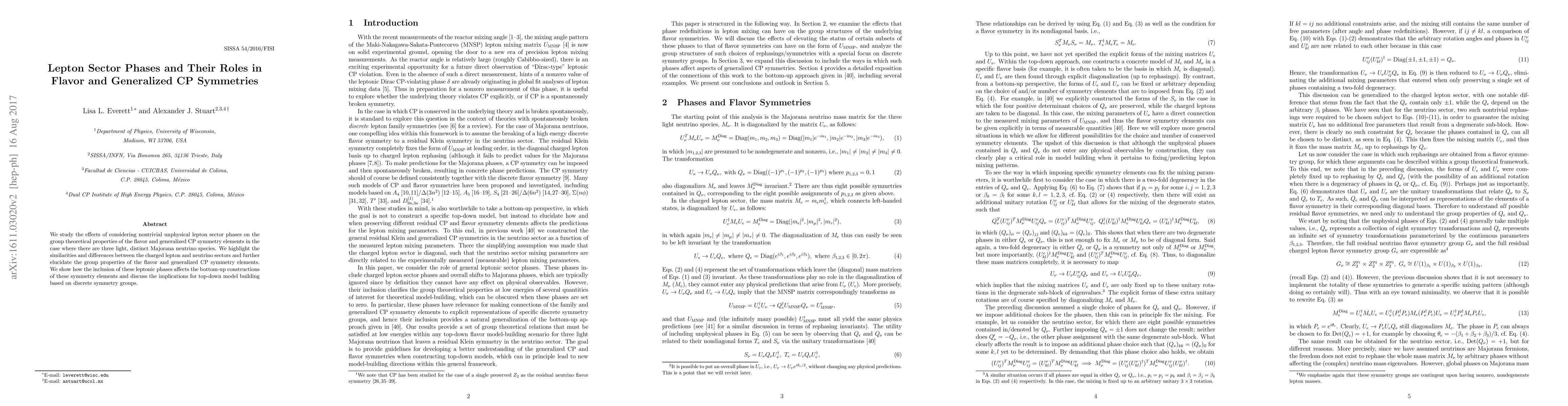 We study the effects of considering nontrivial unphysical lepton sector phases on the group theoretical properties of the flavor and generalized CP symmetry elements in the case where there are three light, distinct Majorana neutrino species. We highlight the similarities and differences between the charged lepton and neutrino sectors and further elucidate the group properties of the flavor and generalized CP symmetry elements. We show how the inclusion of these leptonic phases affects the bottom-up constructions of these symmetry elements and discuss the implications for top-down model building based on discrete symmetry groups.