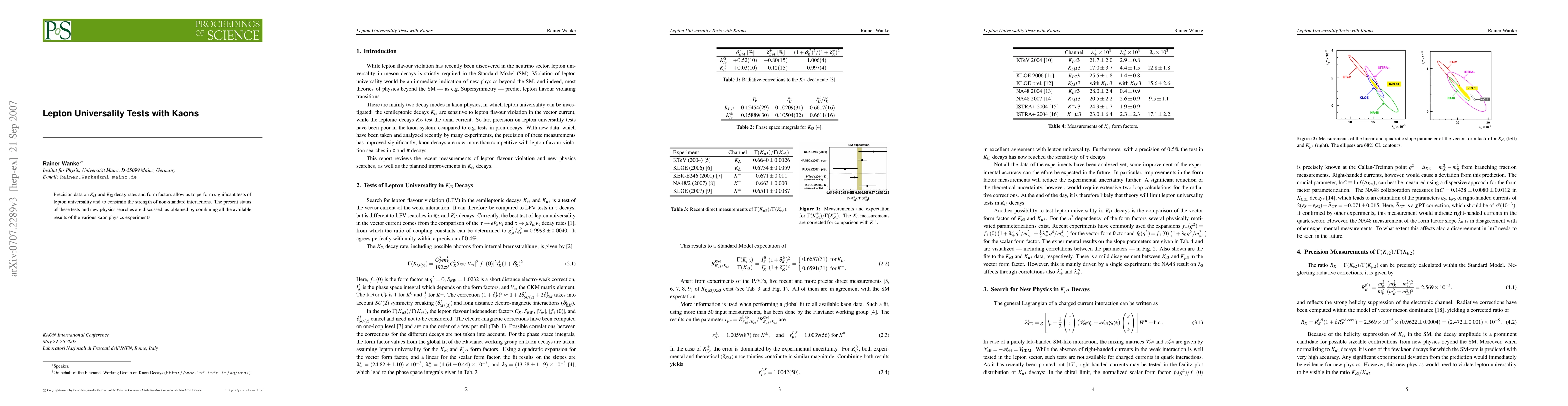 This paper examines Kl3 and Kl2 decay rates and form factors to test lepton universality and constrain non-standard interactions, synthesizing results from various kaon physics experiments to explore potential new physics.