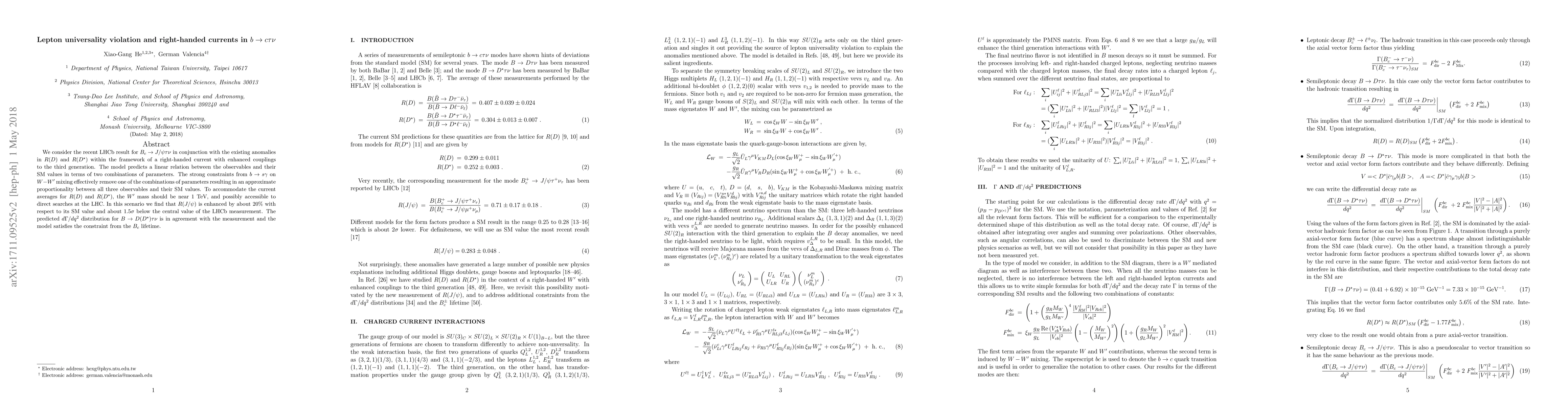 We consider the recent LHCb result for $B_c\to J/\psi \tau \nu$ in conjunction with the existing anomalies in $R(D)$ and $R(D^\star)$ within the framework of a right-handed current with enhanced couplings to the third generation. The model predicts a linear relation between the observables and their SM values in terms of two combinations of parameters. The strong constraints from $b\to s \gamma$ on $W-W^\prime$ mixing effectively remove one of the combinations of parameters resulting in an approximate proportionality between all three observables and their SM values. To accommodate the current averages for $R(D)$ and $R(D^\star)$, the $W^\prime$ mass should be near 1 TeV, and possibly accessible to direct searches at the LHC. In this scenario we find that $R(J/\psi)$ is enhanced by about 20\% with respect to its SM value and about 1.5$\sigma$ below the central value of the LHCb measurement. The predicted $d\Gamma/dq^2$ distribution for $B\to D(D^\star) \tau \nu$ is in agreement with the measurement and the model satisfies the constraint from the $B_c$ lifetime.