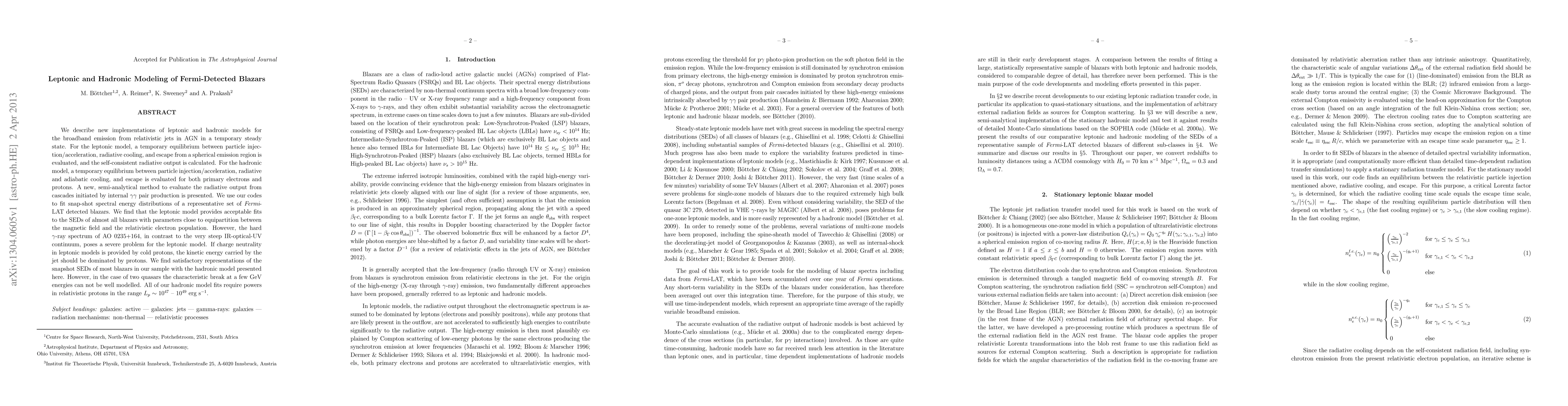 The paper presents new, self-consistent implementations of leptonic and hadronic models for blazar emission, including a semi-analytical method for evaluating radiative output from internal gamma-gamma pair production cascades initiated by hadronic interactions.