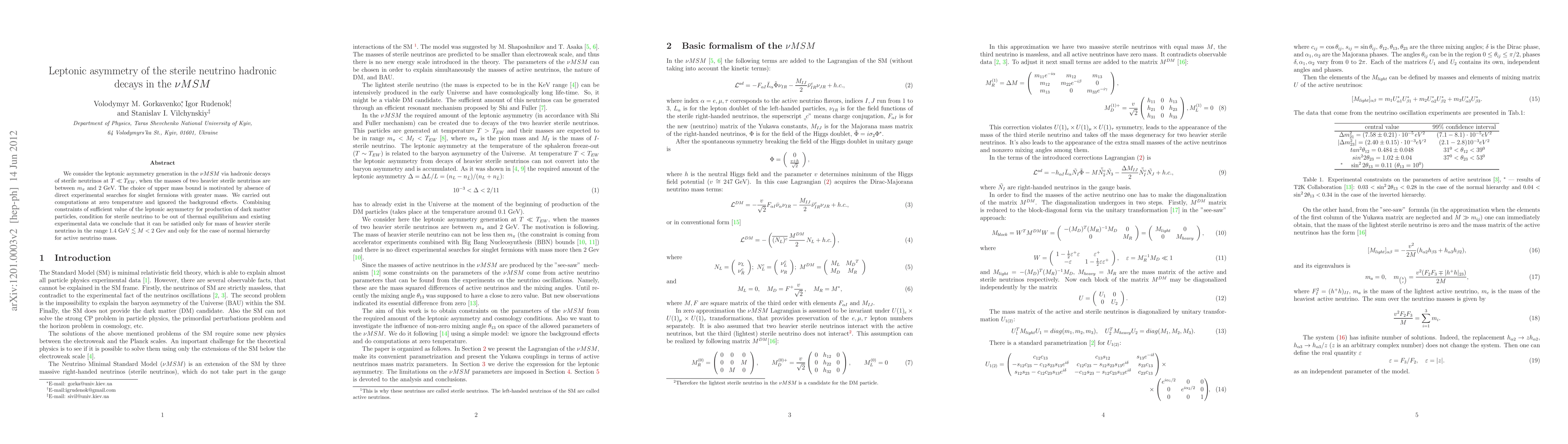 We consider the leptonic asymmetry generation in the nuMSM via hadronic