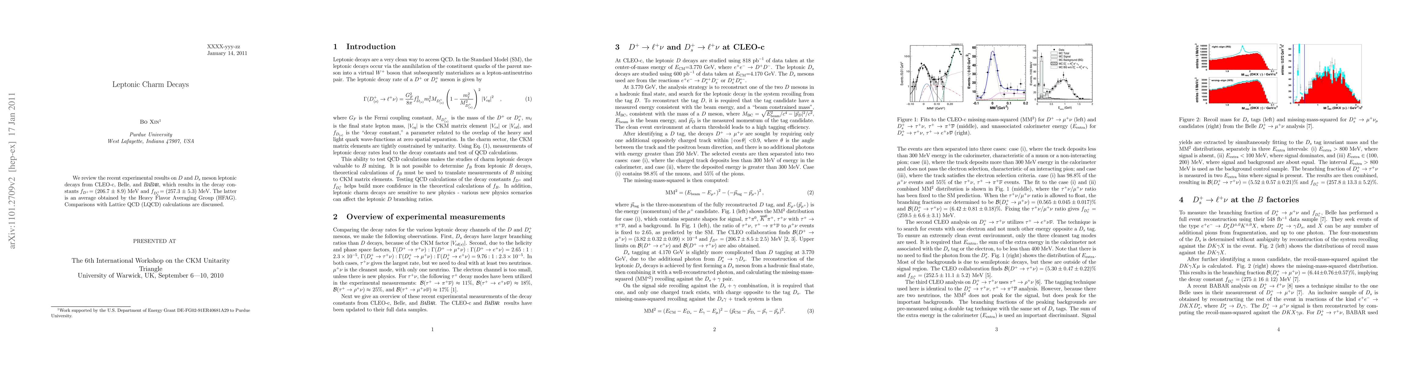 This paper reviews recent experimental findings on D and Ds meson leptonic decays, yielding decay constants f_D and f_Ds, and compares these results with Lattice QCD calculations. The findings enhance our understanding of charm meson properties.