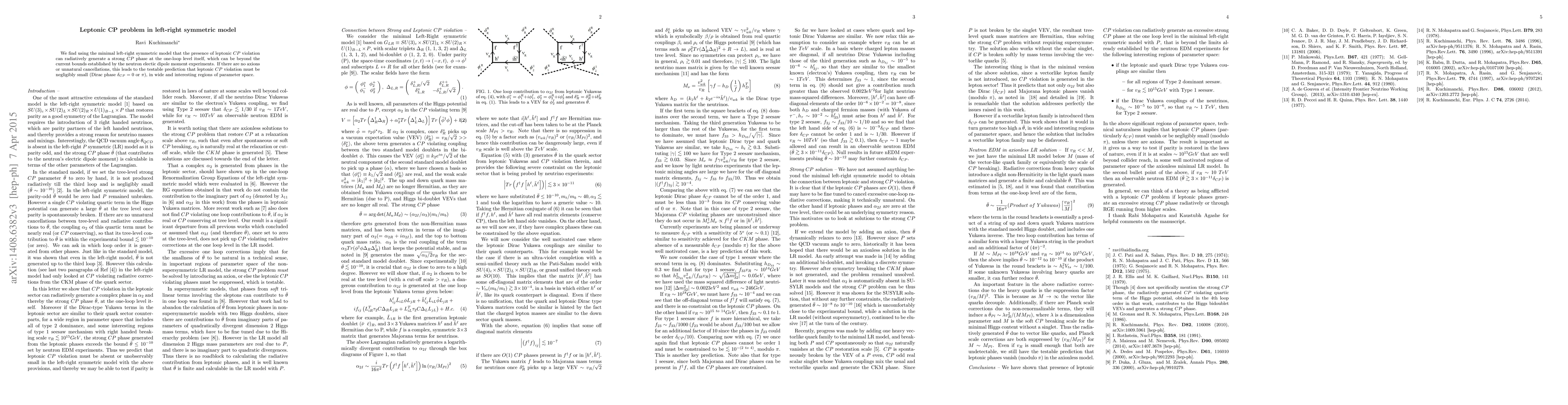 This paper explores the leptonic CP violation in the minimal left-right symmetric model, finding that it can generate a strong CP phase at the one-loop level, potentially exceeding current experimental limits. The study predicts that leptonic CP violation must be extremely small if no axions or unnatural cancellations are present.