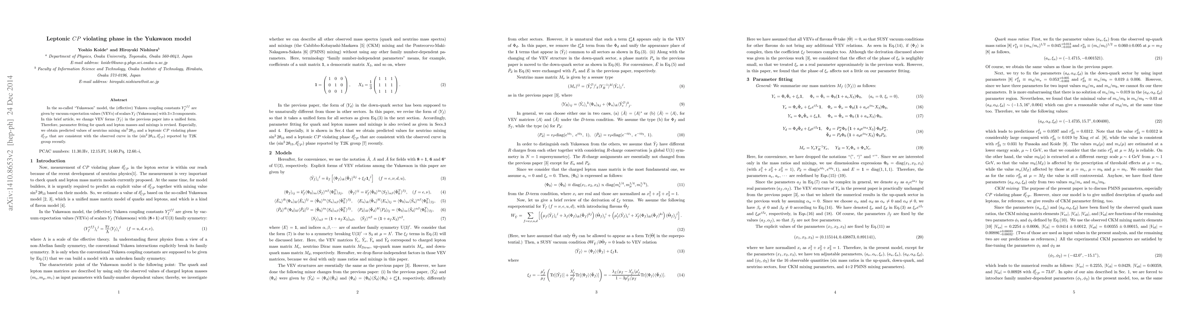 Researchers in the Yukawaon model have unified their approach to calculating neutrino mixing angles and leptonic CP-violating phases, obtaining results consistent with experimental data from T2K.