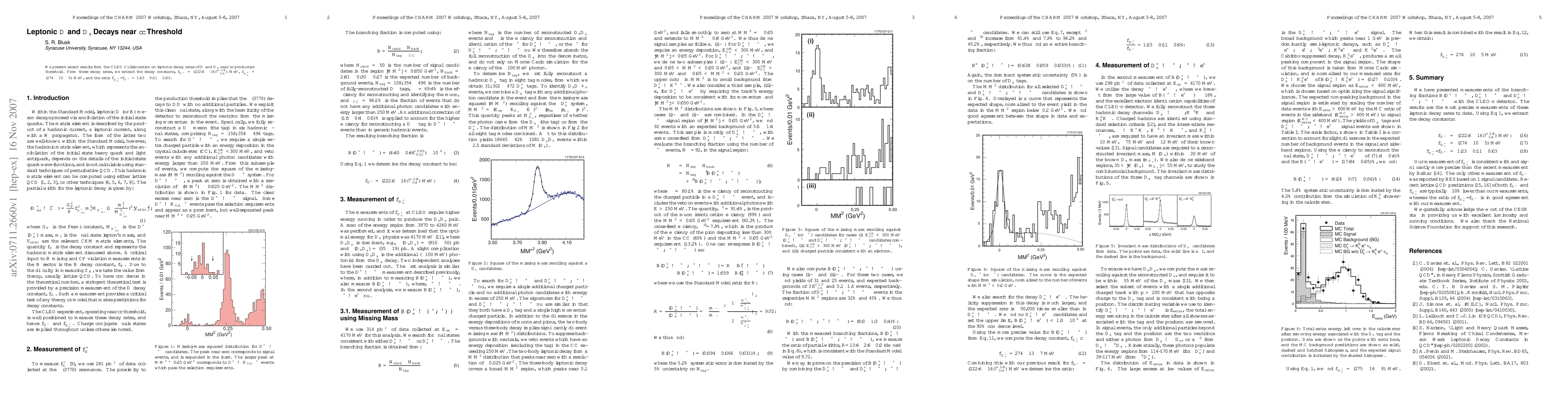 Researchers from CLEO Collaboration measured leptonic decay rates of D and D_s mesons near car{c} threshold, finding decay constants f_D = 222.6 MeV and f_Ds = 274 MeV.