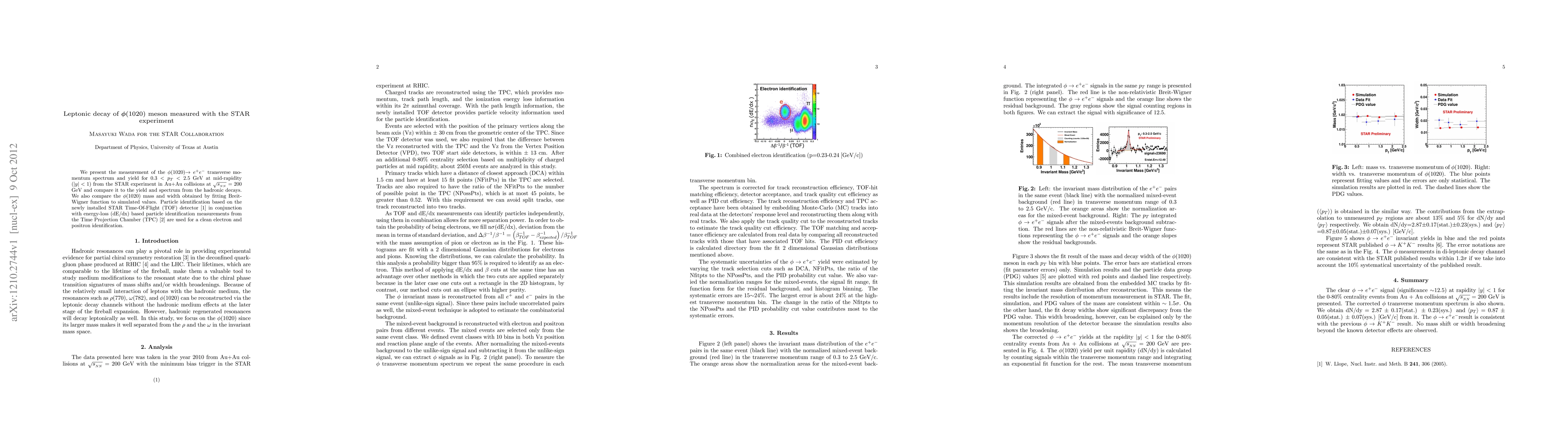 Researchers at STAR experiment measure leptonic decay of phi(1020) meson in Au+Au collisions at 200 GeV, providing insights into its mass, width, and yield.
