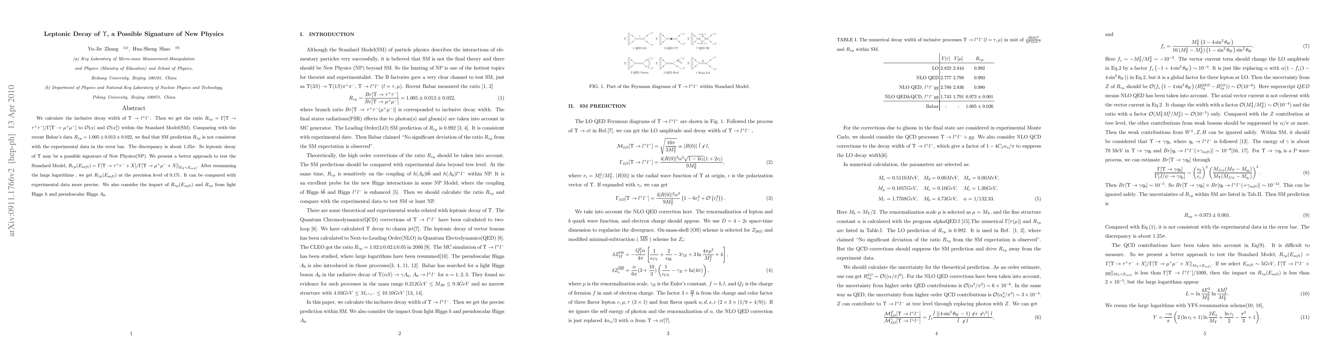 about $1.25\sigma$. So leptonic decay of $\Upsilon$ may be a possible signature