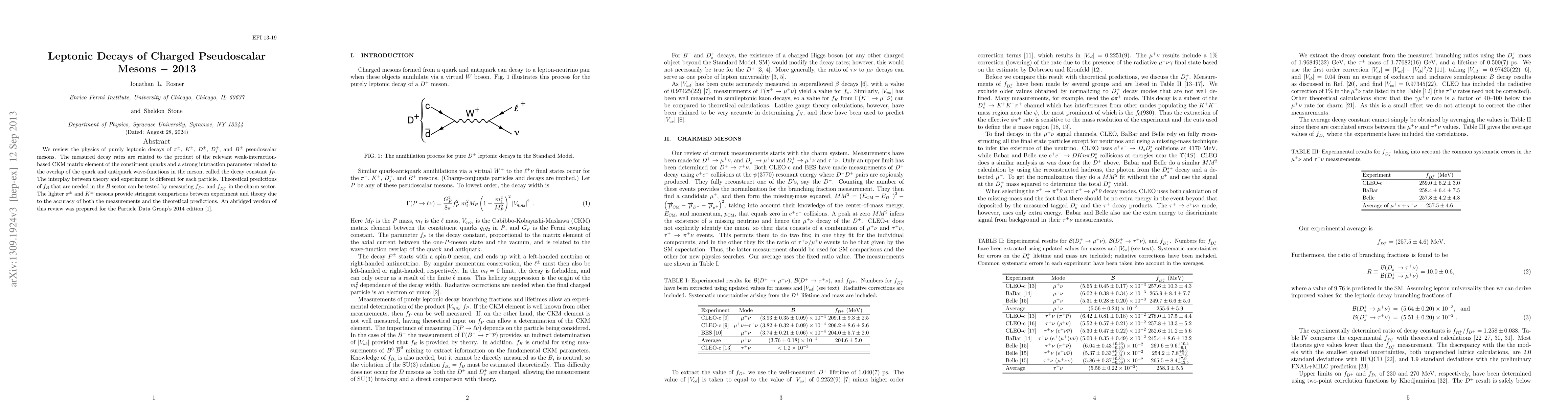 This paper reviews the leptonic decays of charged pseudoscalar mesons, linking measured decay rates to weak interaction CKM matrix elements and decay constants. It highlights the varying interplay between theory and experiment across different mesons, with particular emphasis on the $B$ sector and comparisons between the charm and light meson sectors.