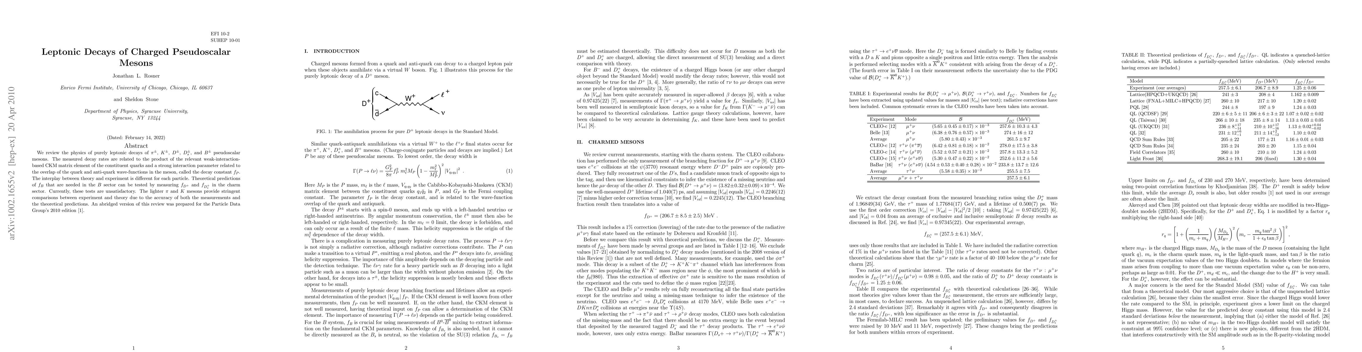 This paper reviews the leptonic decays of various charged pseudoscalar mesons, linking measured decay rates to weak-interaction CKM matrix elements and decay constants. It highlights the discrepancies in theoretical predictions and experimental measurements, especially in the $B$ sector, while noting the strong agreement for $\pi$ and $K$ mesons.