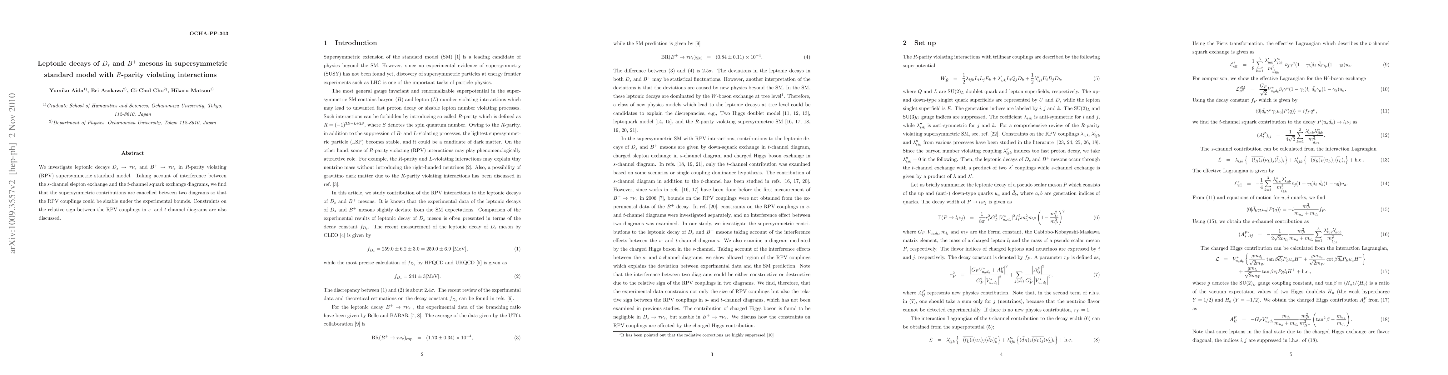 This paper examines leptonic decays of $D_s$ and $B^+$ mesons in a supersymmetric standard model with R-parity violating interactions, finding that supersymmetric contributions cancel out due to interference between s-channel and t-channel diagrams, allowing sizable RPV couplings within experimental limits. Constraints on the relative sign between RPV couplings in these diagrams are also analyzed.