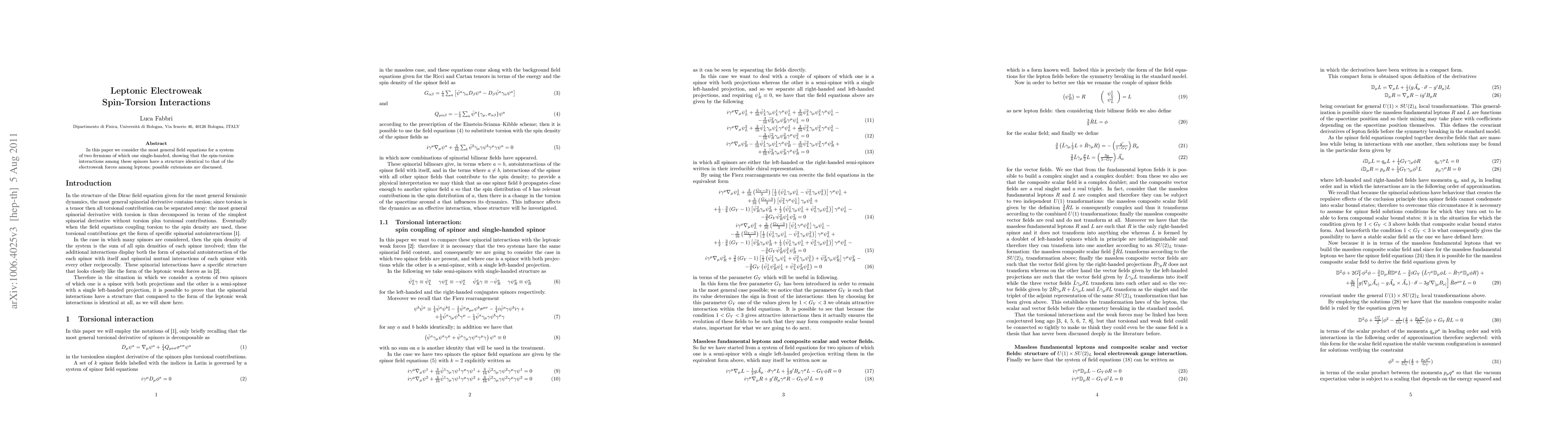 In this paper we consider the most general field equations for a system of two fermions of which one single-handed, showing that the spin-torsion interactions among these spinors have a structure identical to that of the electroweak forces among leptons; possible extensions are discussed.