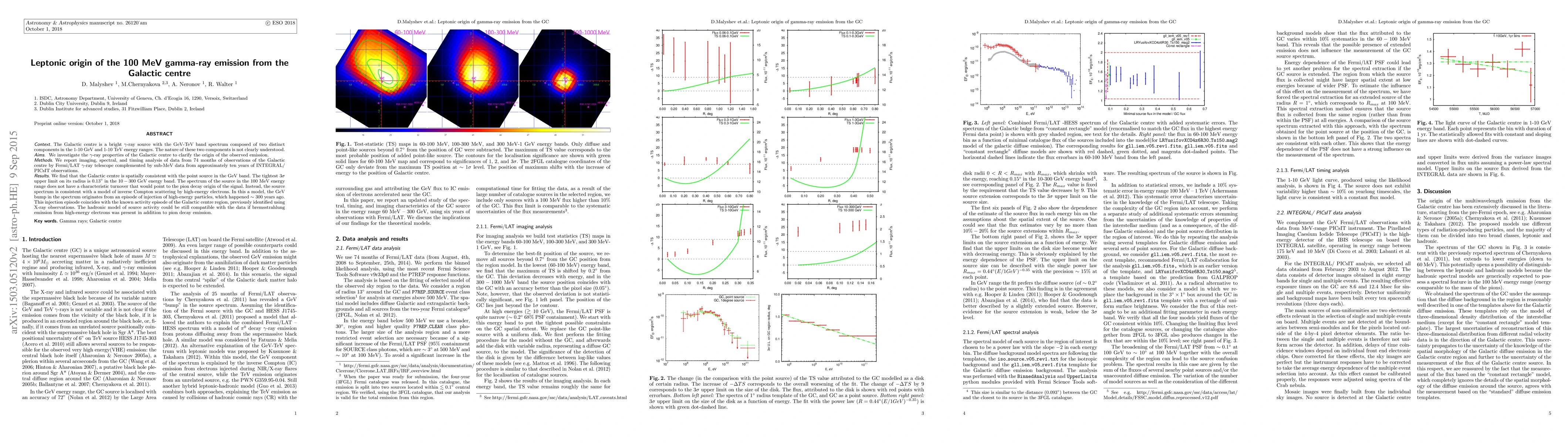 The Fermi-LAT and INTEGRAL observations reveal that the 100 MeV gamma-ray emission from the Galactic Centre likely originates from inverse Compton scattering by high-energy electrons rather than pion decay, suggesting a leptonic emission mechanism. The GeV spectrum's bump is attributed to a recent (~300 years ago) injection of high-energy particles.