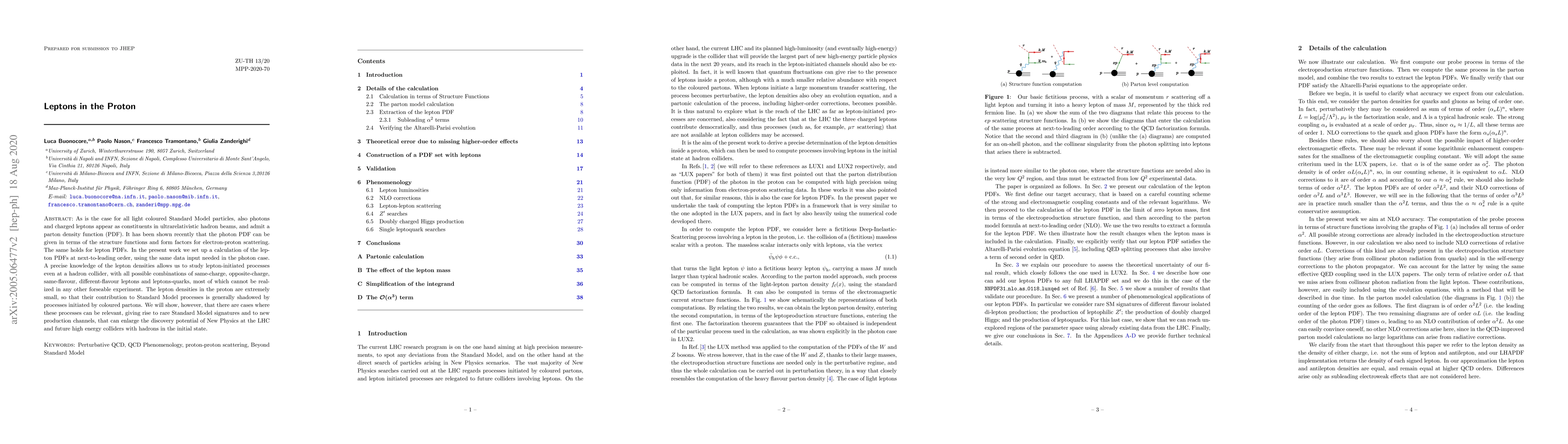 As is the case for all light coloured Standard Model particles, also photons and charged leptons appear as constituents in ultrarelativistic hadron beams, and admit a parton density function (PDF). It has been shown recently that the photon PDF can be given in terms of the structure functions and form factors for electron-proton scattering. The same holds for lepton PDFs. In the present work we set up a calculation of the lepton PDFs at next-to-leading order, using the same data input needed in the photon case. A precise knowledge of the lepton densities allows us to study lepton-initiated processes even at a hadron collider, with all possible combinations of same-charge, opposite-charge, same-flavour, different-flavour leptons and leptons-quarks, most of which cannot be realized in any other foreseeable experiment. The lepton densities in the proton are extremely small, so that their contribution to Standard Model processes is generally shadowed by processes initiated by coloured partons. We will show, however, that there are cases where these processes can be relevant, giving rise to rare Standard Model signatures and to new production channels, that can enlarge the discovery potential of New Physics at the LHC and future high energy colliders with hadrons in the initial state.