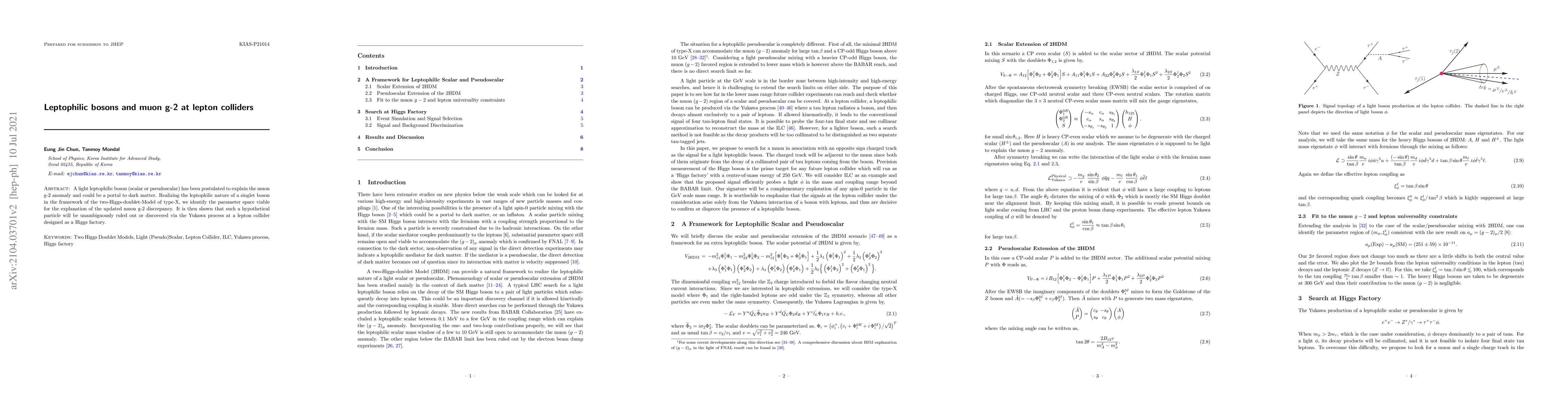 This paper explores the potential of a light leptophilic boson to explain the muon g-2 anomaly and its connection to dark matter. It identifies the parameter space for such a boson within a two-Higgs-doublet-Model and concludes that a lepton collider could definitively detect or rule out this hypothetical particle through the Yukawa process.