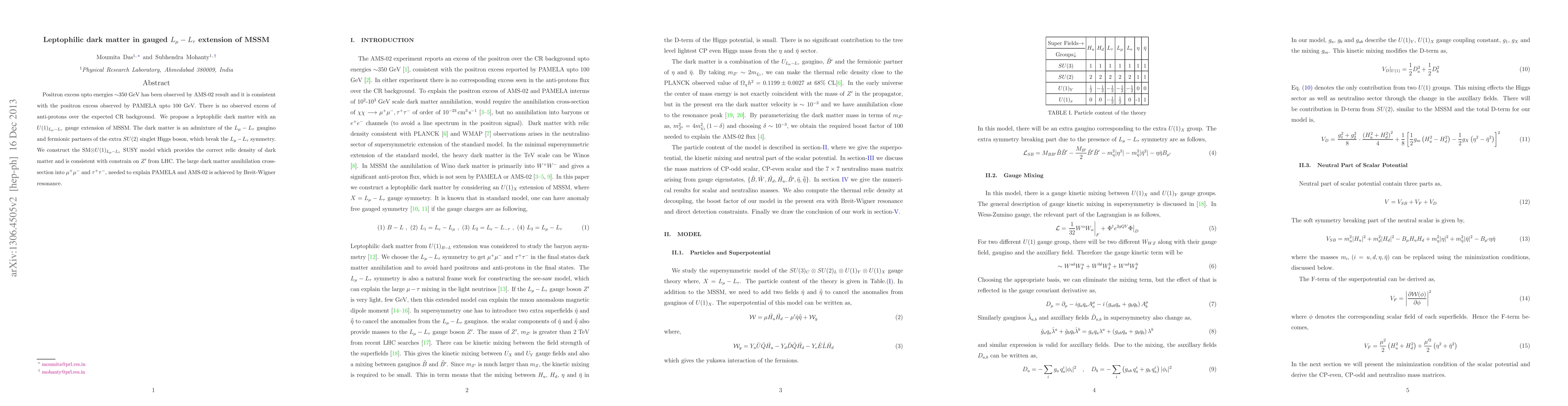 This research proposes a leptophilic dark matter model in a gauged $U(1)_{L_{\mu}-L_{\tau}}$ extension of the MSSM to explain the positron excess observed by AMS-02 and PAMELA. The model includes an admixture of $L_{\mu}-L_{\tau}$ gaugino and extra Higgs partners, providing the correct dark matter relic density and consistent with LHC constraints.