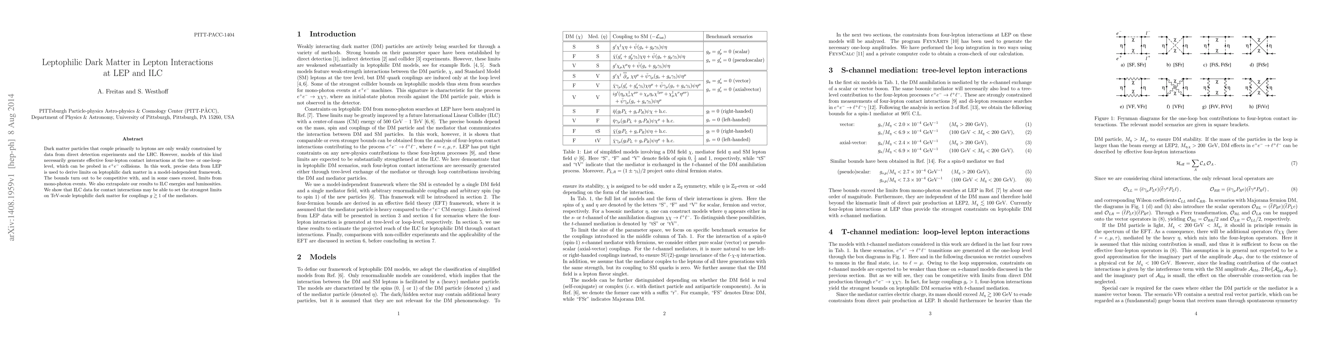 This paper investigates leptophilic dark matter models that primarily interact with leptons, deriving limits on these models using LEP data and comparing them to LHC constraints. It finds that LEP data provides competitive limits, and projects that ILC data could set even stronger limits on TeV-scale leptophilic dark matter for certain mediator couplings.