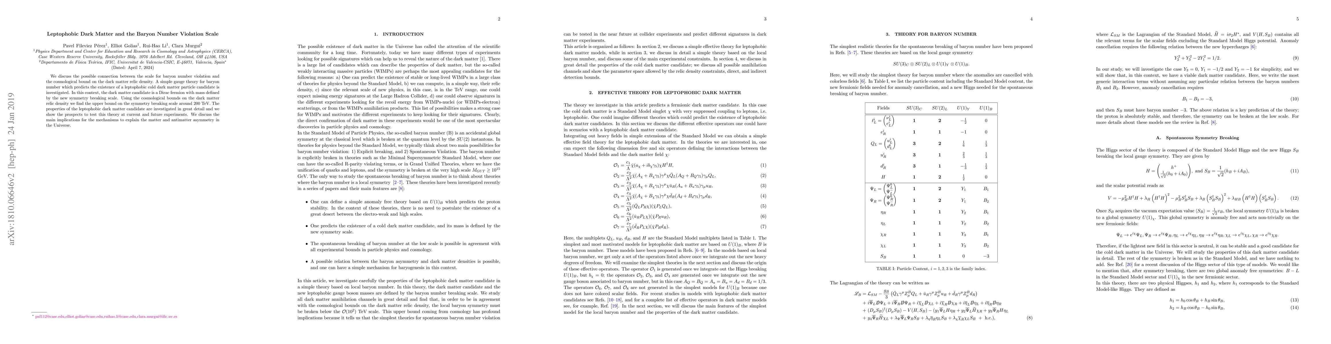 This paper explores the link between baryon number violation and dark matter, proposing a leptophobic dark matter candidate in a gauge theory. It finds an upper bound of 200 TeV for the symmetry breaking scale, and discusses experimental tests for this theory and its implications for matter-antimatter asymmetry.