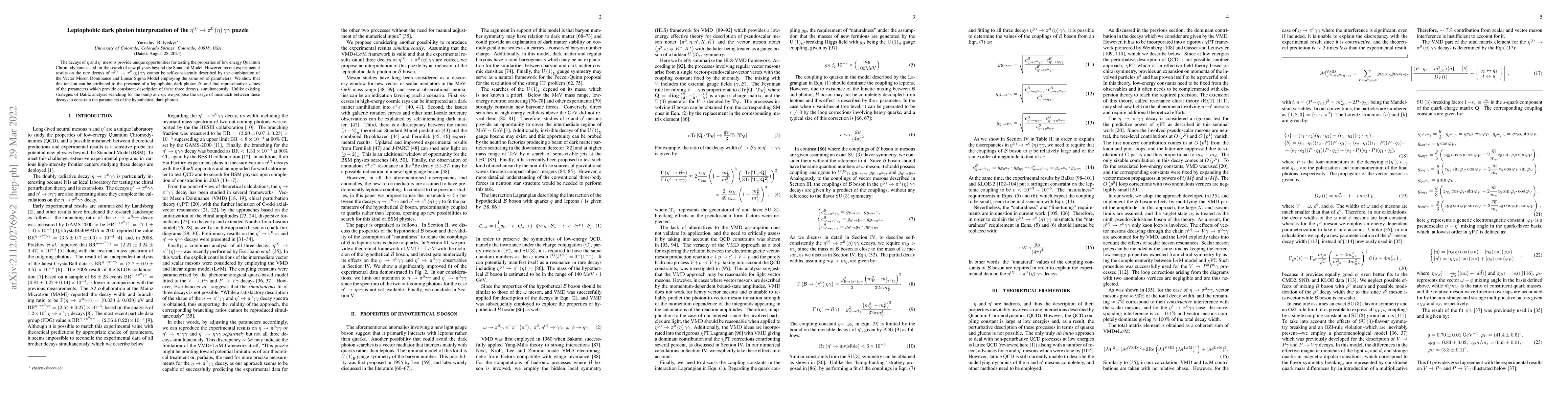 This paper proposes a leptophobic dark photon $\mathcal{B}$ as a solution to the inconsistency in experimental results of $\eta^{(\prime)}\rightarrow\pi^0(\eta)\gamma\gamma$ decays. It finds parameter values for the dark photon that provide a consistent description, using the mismatch between these decays to constrain its properties.