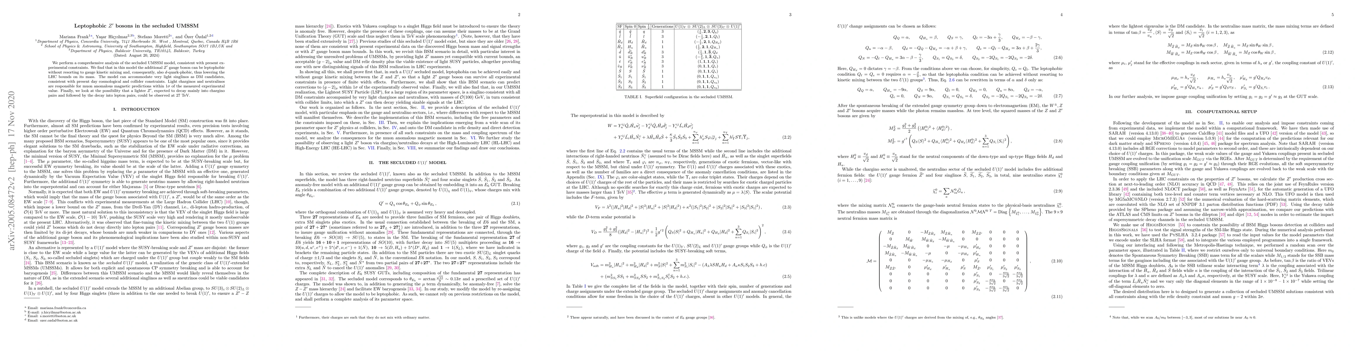 This paper analyzes the secluded UMSSM model, finding that its $Z^\prime$ boson can be leptophobic and $d$-quark-phobic, thus evading LHC mass constraints. The model supports light singlino dark matter and charginos/neutralinos that align with muon anomalous magnetic moment measurements.