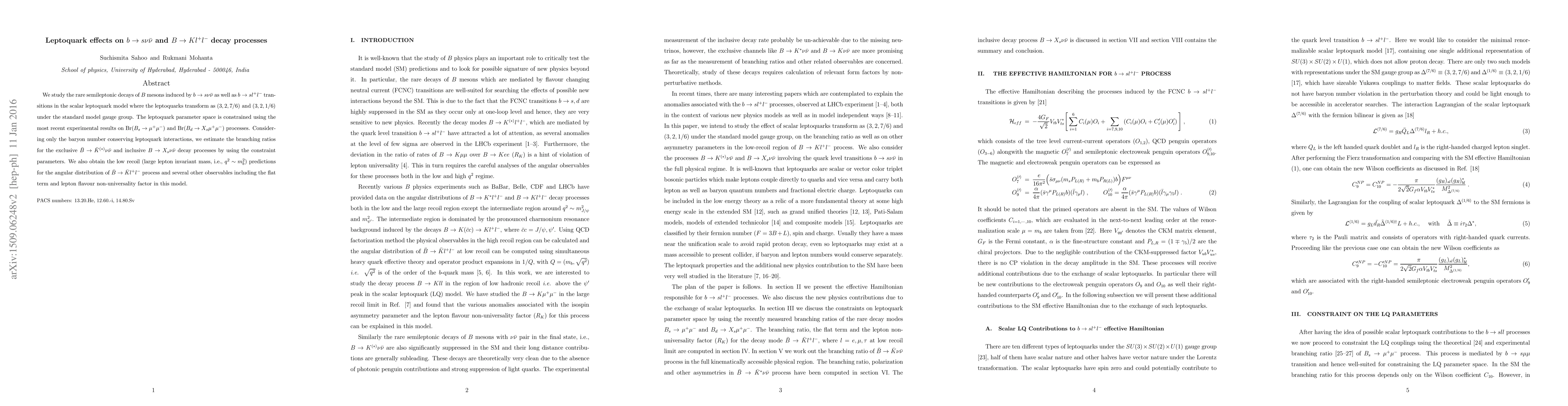This paper investigates the impact of scalar leptoquarks in the $(3,2,7/6)$ and $(3,2,1/6)$ representations on rare $B$ meson decays, specifically $b \to s \nu \bar{\nu}$ and $b \to s l^+ l^-$ transitions, using recent experimental data to constrain the leptoquark parameter space. The study estimates branching ratios and predicts angular distributions for these decay processes.