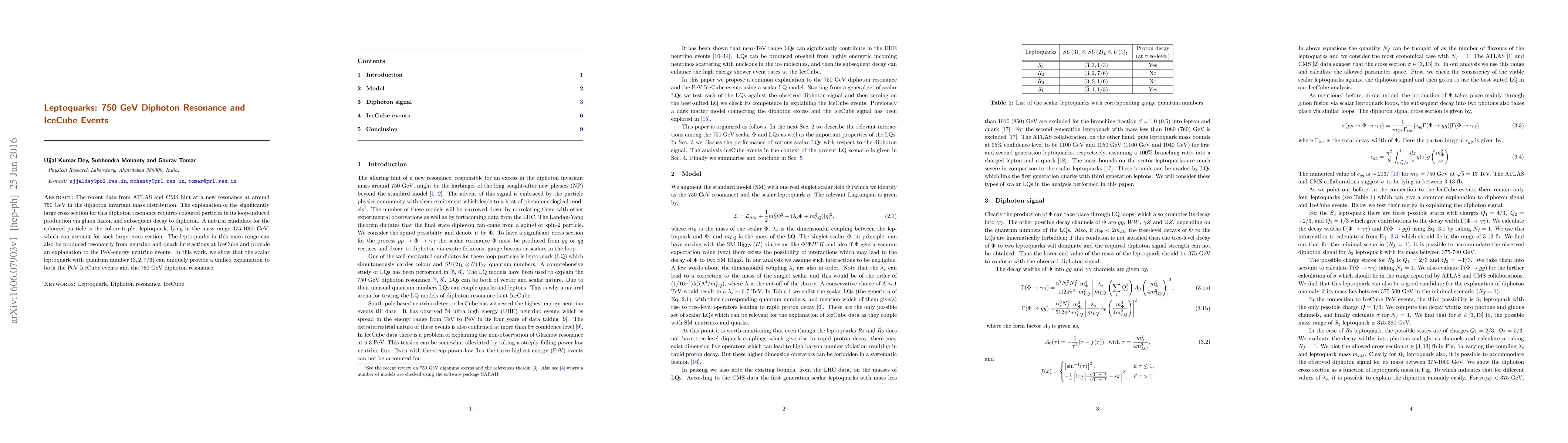 This paper explores a scalar leptoquark with quantum number $(3,2,7/6)$ as a unified explanation for a 750 GeV diphoton resonance observed in ATLAS and CMS data and PeV-energy neutrino events detected at IceCube, suggesting it can account for both phenomena via resonant production.