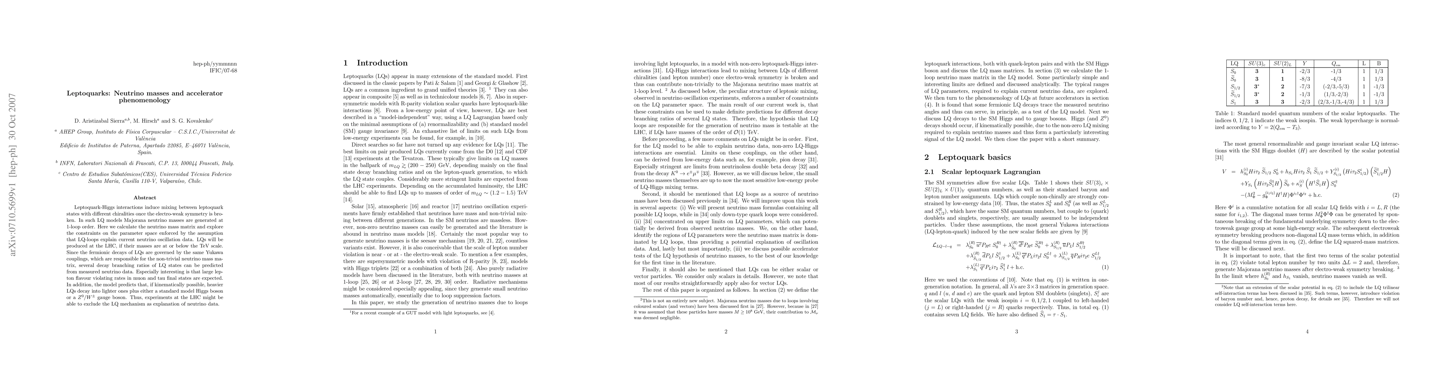 The paper presents a comprehensive analysis of LQ phenomenology in the context of neutrino mass generation, linking LQ-Higgs interactions to neutrino oscillation data.