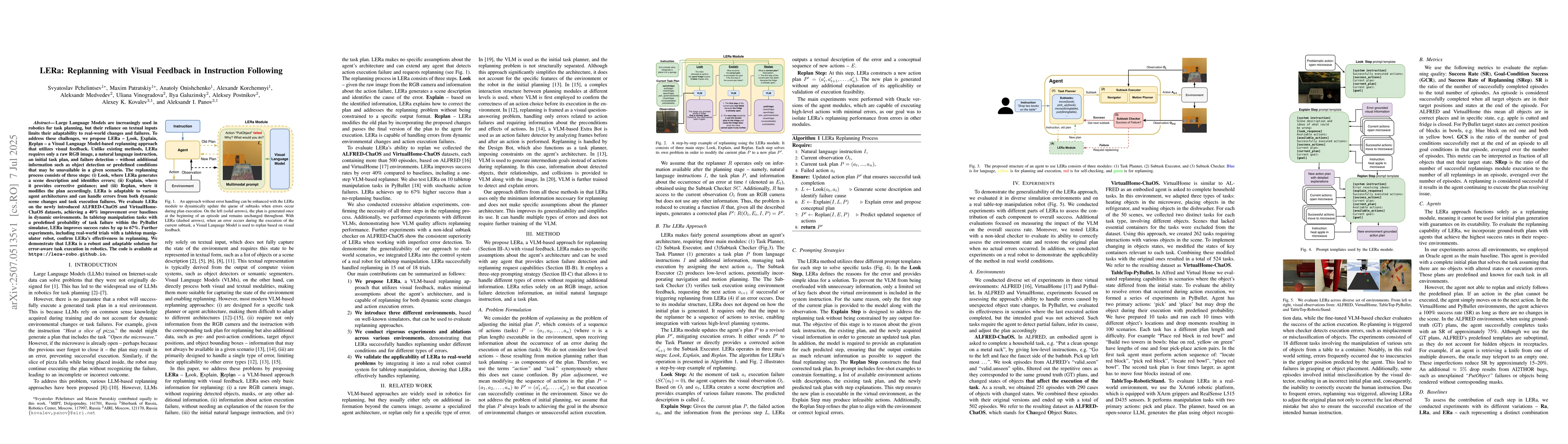 The research introduces LERa, a Visual Language Model-based replanning approach that uses visual feedback for effective replanning in robotics. LERa operates with minimal additional information, making it adaptable across different agent architectures.