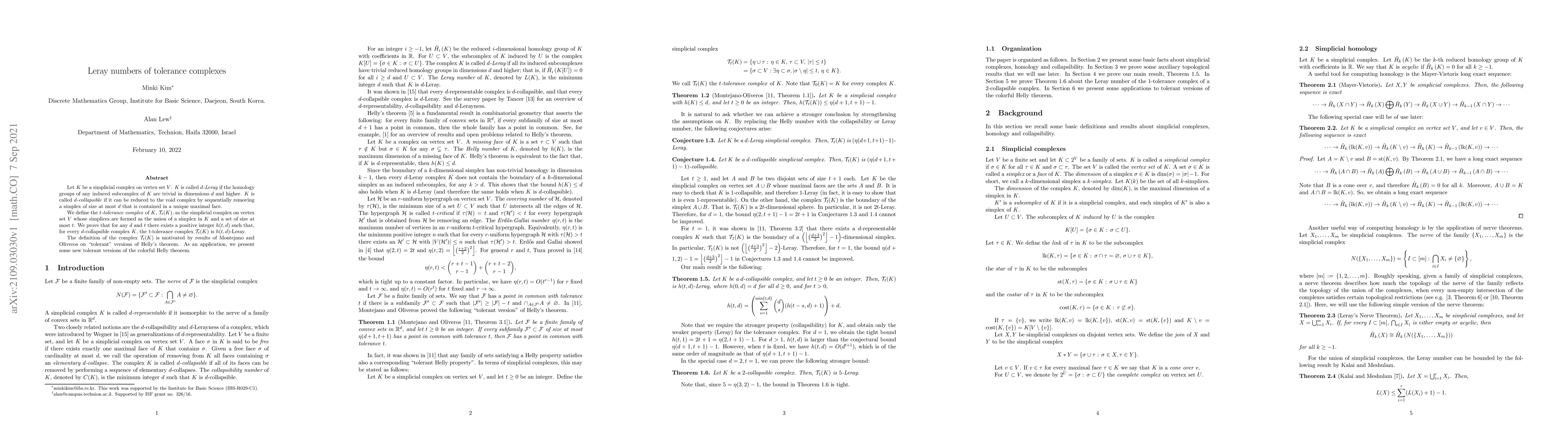 Researchers have developed a new concept called the $t$-tolerance complex of a simplicial complex, which is shown to be related to $d$-Leray complexes, with specific applications in tolerant versions of Helly's theorem.