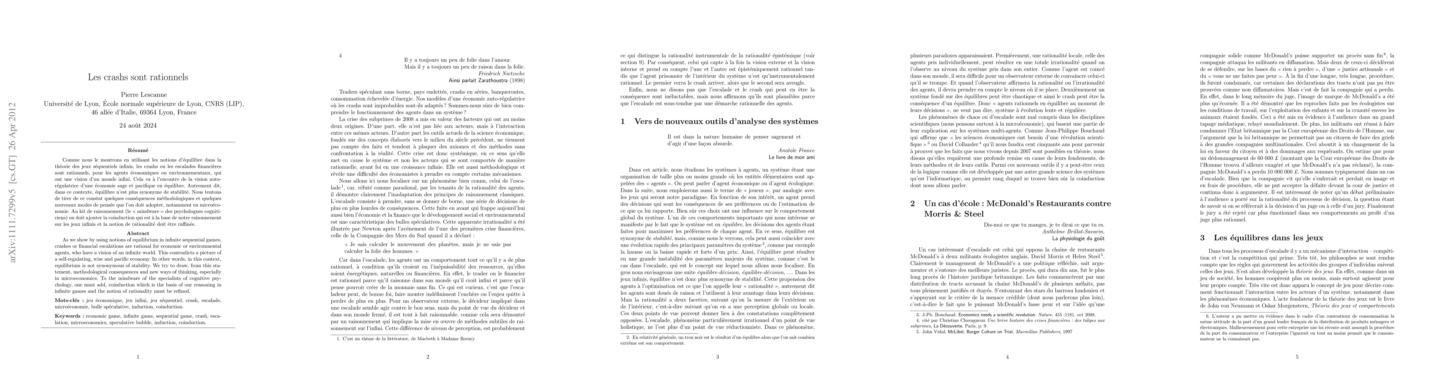 As we show by using notions of equilibrium in infinite sequential games, crashes or financial escalations are rational for economic or environmental agents, who have a vision of an infinite world. This contradicts a picture of a self-regulating, wise and pacific economic world. In other words, in this context, equilibrium is not synonymous of stability. We try to draw, from this statement, methodological consequences and new ways of thinking, especially in economic game theory. Among those new paths, coinduction is the basis of our reasoning in infinite games.
