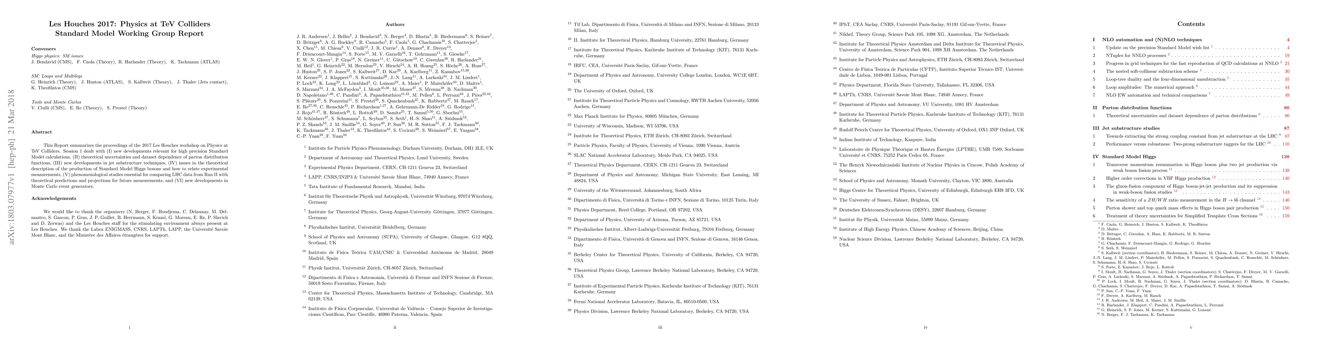 Researchers at the 2017 Les Houches workshop discussed key areas of improvement for Standard Model calculations in high-energy particle colliders, including precision calculations, parton distribution functions, and jet substructure techniques.