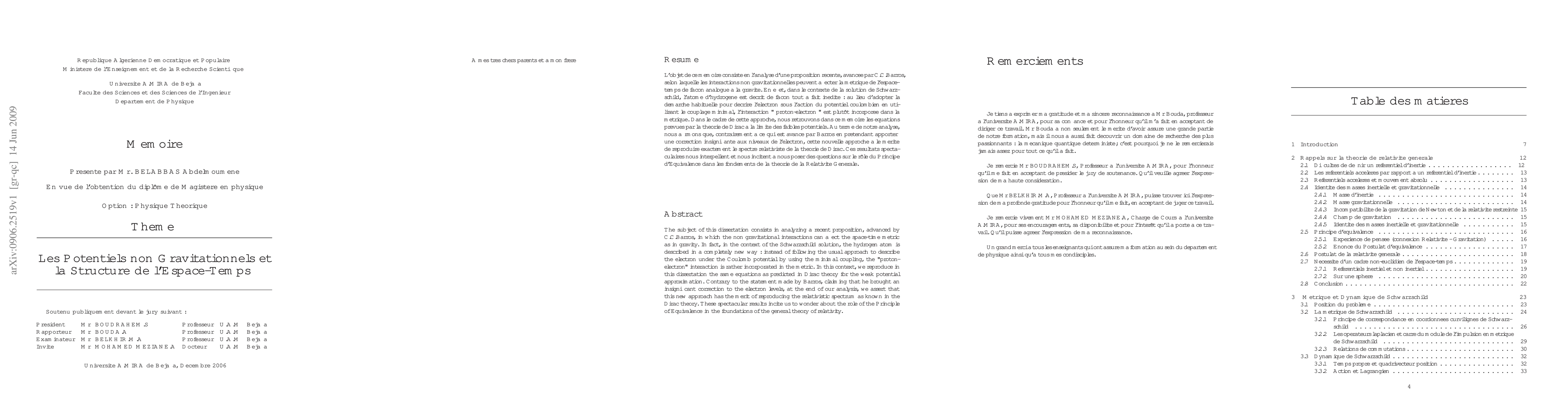 The subject of this dissertation consists in analyzing a recent proposition, advanced by C.C.Barros, in which the non gravitational interactions can affect the space-time metric as in gravity. In fact, in the context of the Schwarzschild solution, the hydrogen atom is described in a completely new way : instead of following the usual approach to describe the electron under the Coulomb potential by using the minimal coupling, the "proton-electron" interaction is rather incorporated in the metric. In this context, we reproduce in this dissertation the same equations as predicted in Dirac theory for the weak potential approximation. Contrary to the statement made by Barros, claiming that he brought an insignificant correction to the electron levels, at the end of our analysis, we assert that this new approach has the merit of reproducing the relativistic spectrum as known in the Dirac theory. These spectacular results incite us to wonder about the role of the Principle of Equivalence in the foundations of the general theory of relativity.