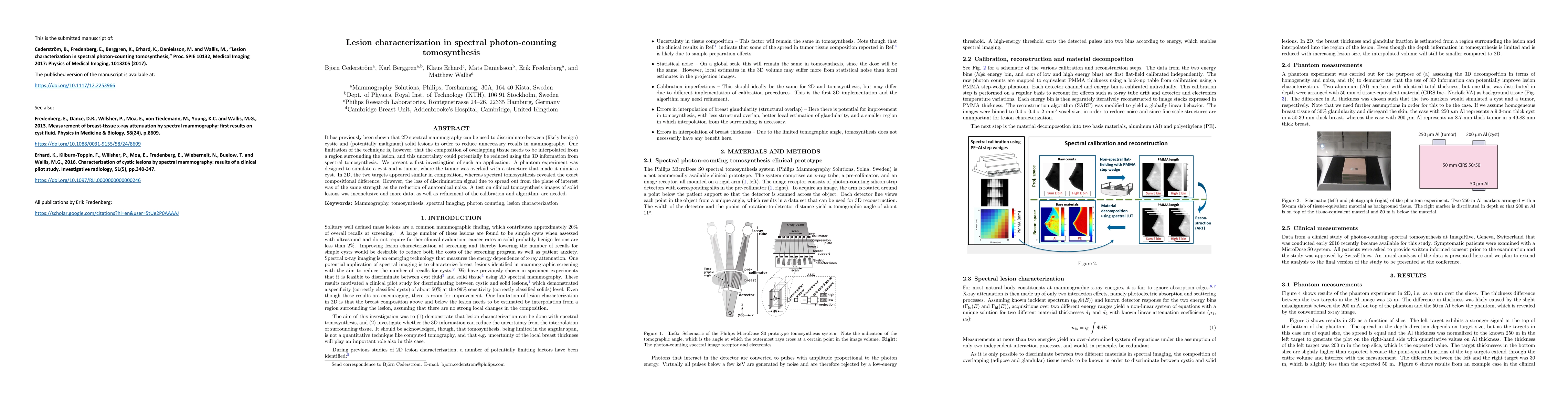 This study investigates the potential of spectral photon-counting tomosynthesis to characterize lesions, demonstrating its ability to distinguish between cystic and solid lesions in 3D compared to 2D spectral mammography. While preliminary results show promise, further refinement and larger data sets are needed to conclusively determine its benefits over 2D techniques.