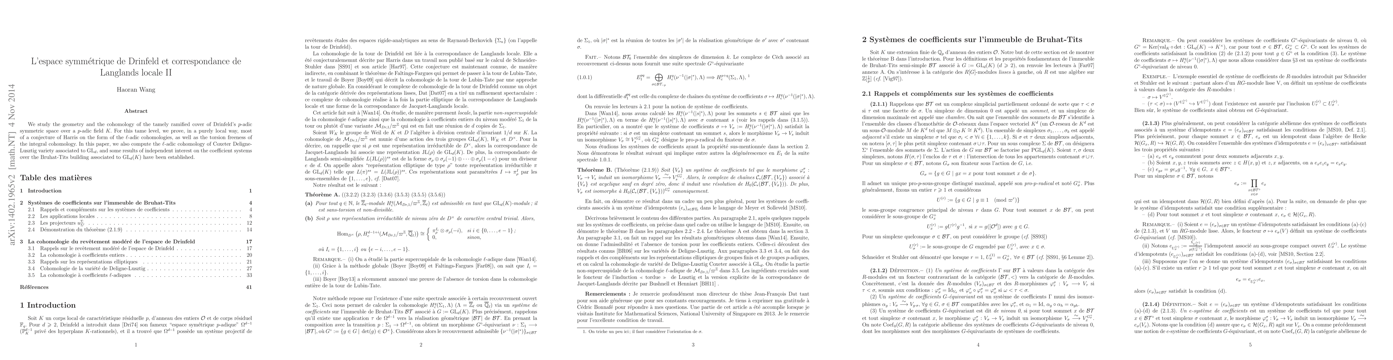 We study the geometry and the cohomology of the tamely ramified cover of Drinfeld's $p$-adic symmetric space. For this tame level, we prove, in a purely local way, most of a conjecture of Harris on the form of the $\ell$-adic cohomologies, as well as the torsion freeness of the integral cohomology. During the study, we obtain some results of independent interest on the coefficient systems over the Bruhat-Tits building associated to $GL_d(K).$
