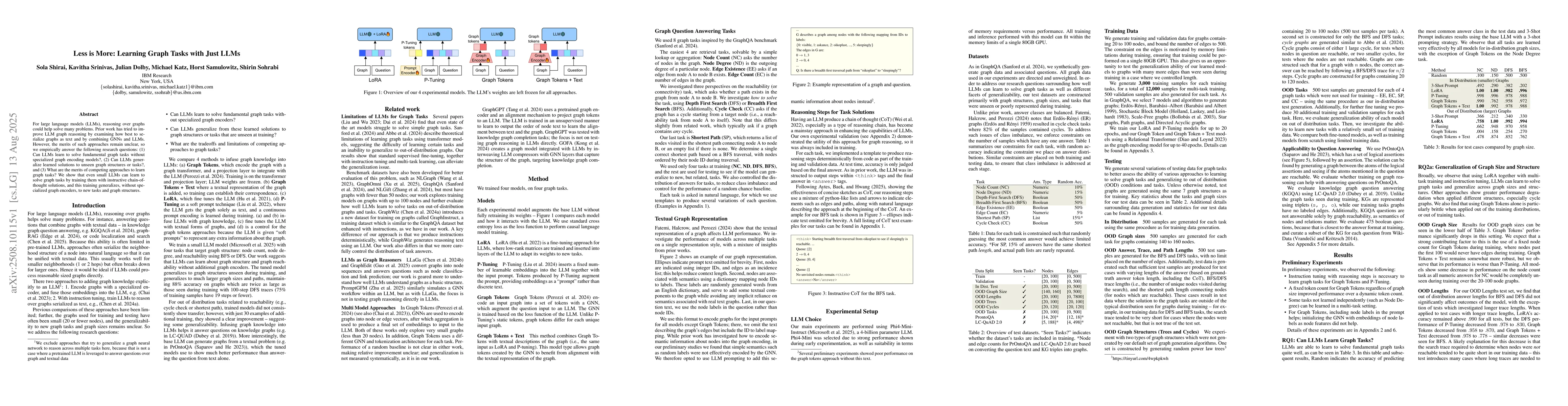 For large language models (LLMs), reasoning over graphs could help solve many problems. Prior work has tried to improve LLM graph reasoning by examining how best to serialize graphs as text and by combining GNNs and LLMs. However, the merits of such approaches remain unclear, so we empirically answer the following research questions: (1) Can LLMs learn to solve fundamental graph tasks without specialized graph encoding models?, (2) Can LLMs generalize learned solutions to unseen graph structures or tasks?, and (3) What are the merits of competing approaches to learn graph tasks? We show that even small LLMs can learn to solve graph tasks by training them with instructive chain-of-thought solutions, and this training generalizes, without specialized graph encoders, to new tasks and graph structures.