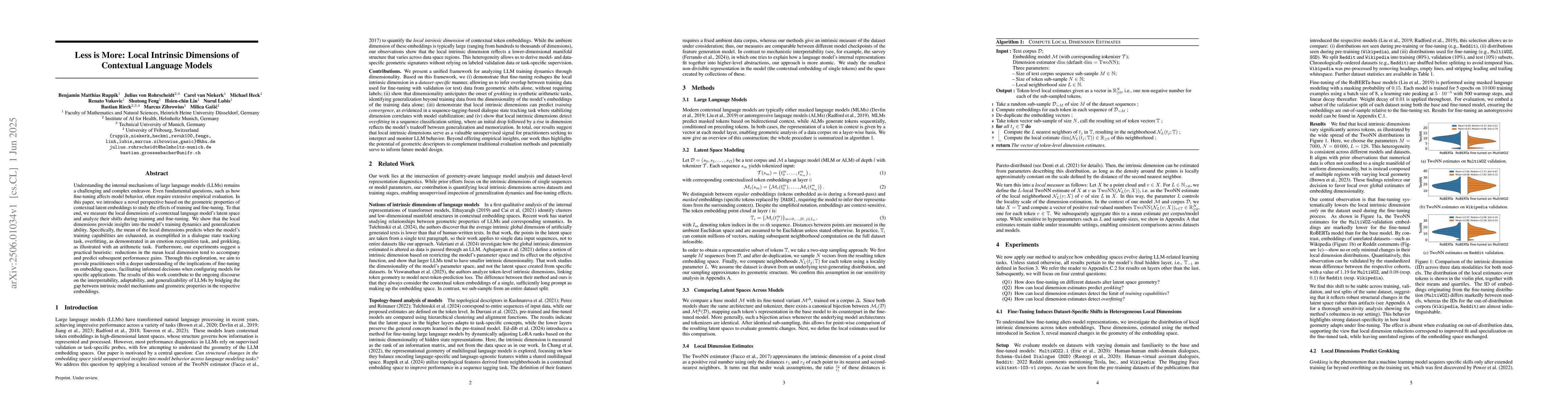 A new study explores how large language models change during training and fine-tuning, revealing insights into their performance and ability to generalize. The research provides a practical heuristic for optimizing model configurations based on the local dimensions of contextual latent embeddings.