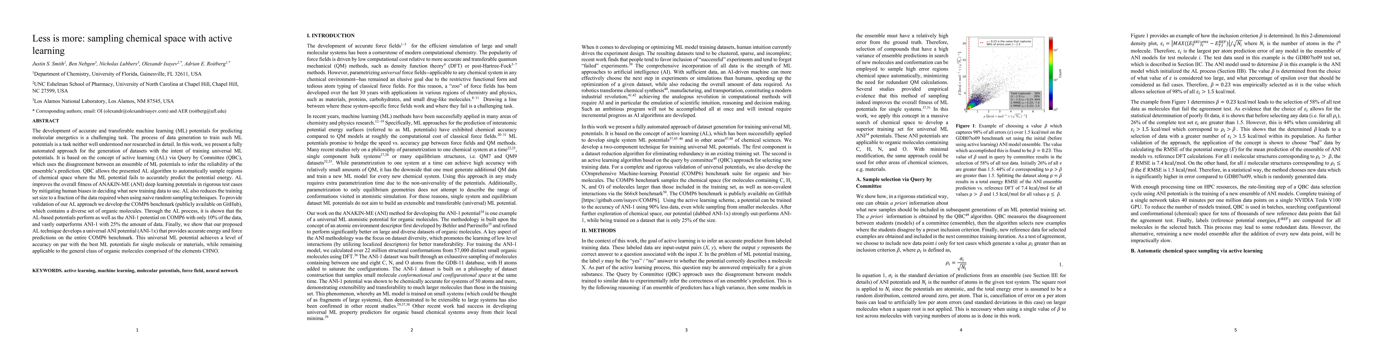 The research distinguishes itself by combining active learning with Query by Committee for dataset generation, resulting in improved ML potentials with reduced training data requirements and enhanced performance across a diverse set of organic molecules.