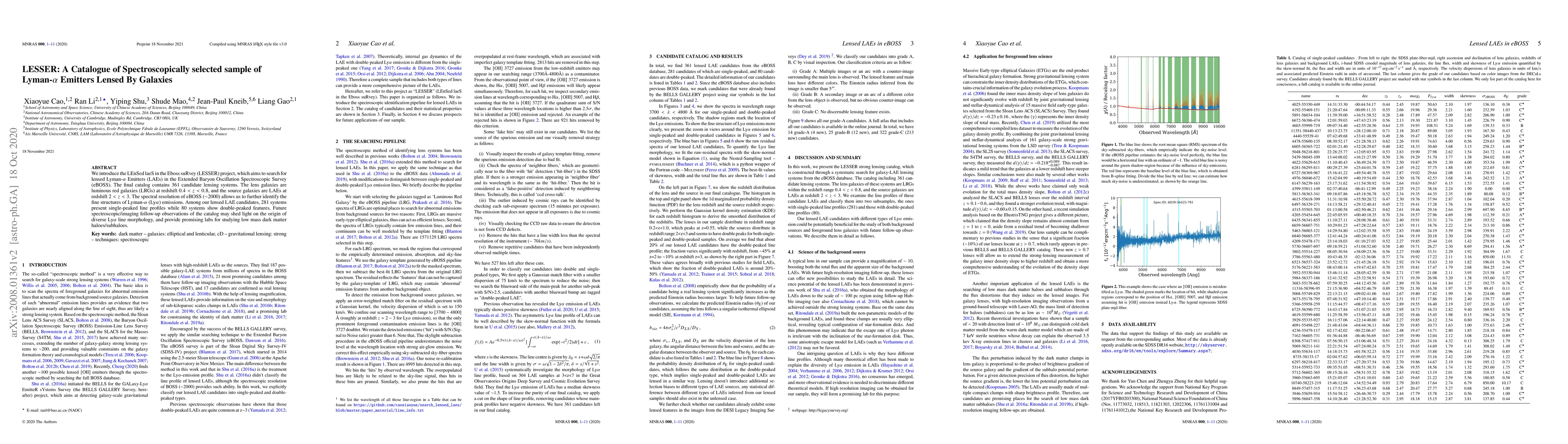 The LESSER project catalogs 361 lensed Lyman-$\alpha$ Emitters (LAEs) identified in the eBOSS survey, using luminous red galaxies as lenses. The study reveals diverse $\rm Ly\alpha$ line morphologies, offering potential insights into dark matter structures.