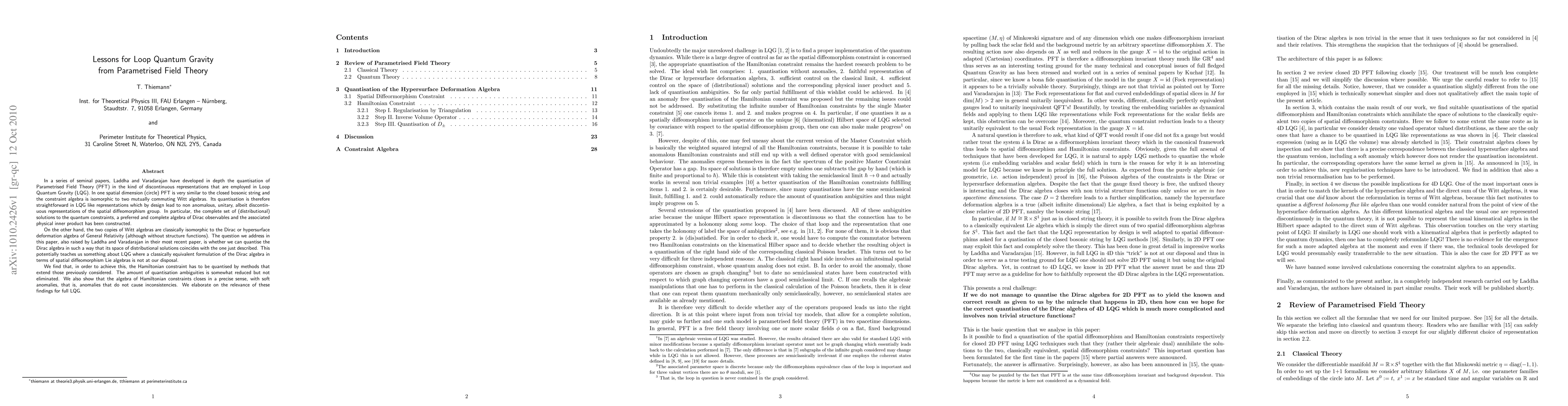 In a series of seminal papers, Laddha and Varadarajan have developed in depth the quantisation of Parametrised Field Theory (PFT) in the kind of discontinuous representations that are employed in Loop Quantum Gravity (LQG). In one spatial dimension (circle) PFT is very similar to the closed bosonic string and the constraint algebra is isomorphic to two mutually commuting Witt algebras. Its quantisation is therefore straightforward in LQG like representations which by design lead to non anomalous, unitary, albeit discontinuous representations of the spatial diffeomorphism group. In particular, the complete set of (distributional) solutions to the quantum constraints, a preferred and complete algebra of Dirac observables and the associated physical inner product has been constructed. On the other hand, the two copies of Witt algebras are classically isomorphic to the Dirac or hypersurface deformation algebra of General Relativity (although without structure functions). The question we address in this paper, also raised by Laddha and Varadarajan in their paper, is whether we can quantise the Dirac algebra in such a way that its space of distributional solutions coincides with the one just described. This potentially teaches us something about LQG where a classically equivalent formulation of the Dirac algebra in terms of spatial diffeomorphism Lie algebras is not at our disposal. We find that, in order to achieve this, the Hamiltonian constraint has to be quantised by methods that extend those previously considered. The amount of quantisation ambiguities is somewhat reduced but not eliminated. We also show that the algebra of Hamiltonian constraints closes in a precise sense, with soft anomalies, that is, anomalies that do not cause inconsistencies. We elaborate on the relevance of these findings for full LQG.