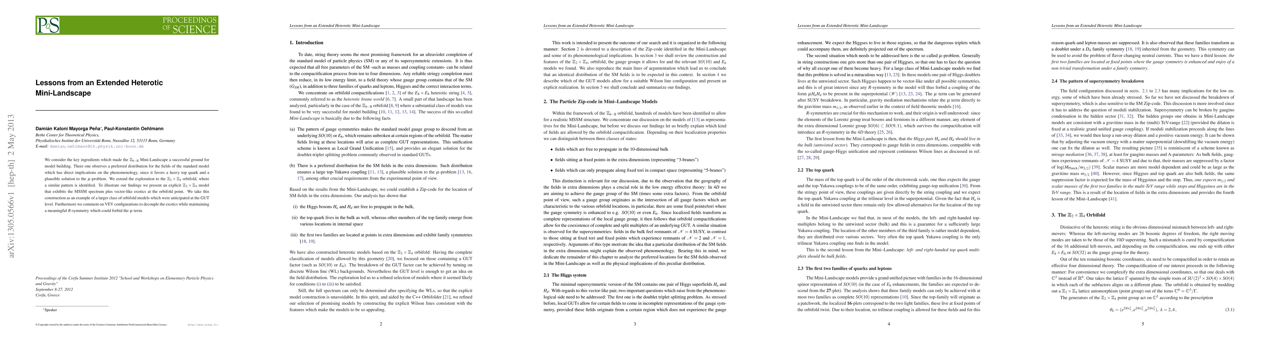 This paper explores the Z_6II and Z_2xZ_4 Mini-Landscapes in string theory, identifying a preferred distribution for standard model fields that favors a heavy top quark and a solution to the $\mu$-problem. It presents an explicit model within the Z_2xZ_4 orbifold that realizes the MSSM spectrum and discusses configurations to decouple exotics while preserving a viable R-symmetry.