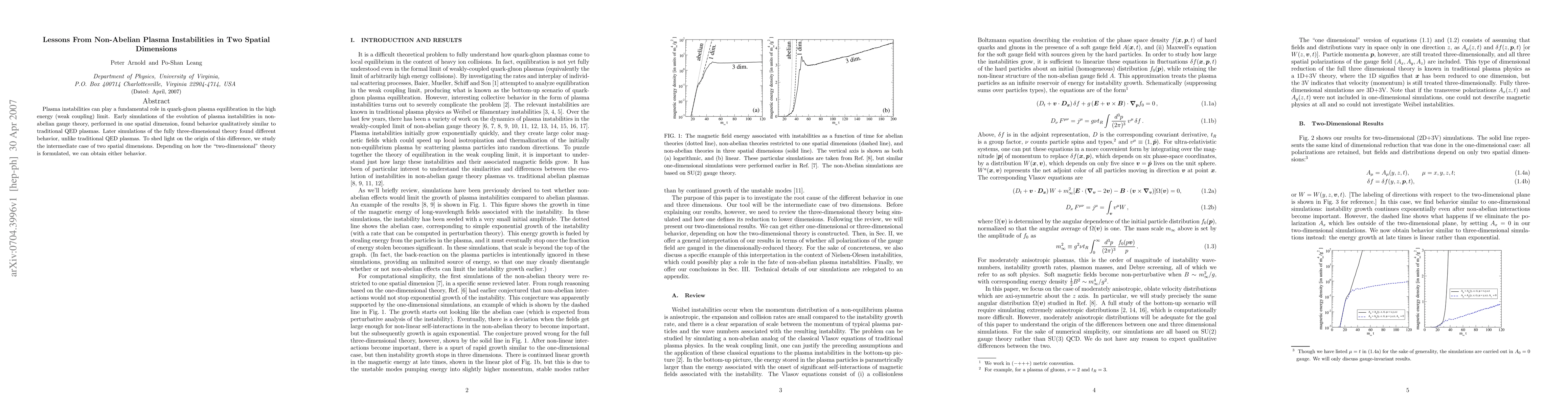 Plasma instabilities can play a fundamental role in quark-gluon plasma equilibration in the high energy (weak coupling) limit. Early simulations of the evolution of plasma instabilities in non-abelian gauge theory, performed in one spatial dimension, found behavior qualitatively similar to traditional QED plasmas. Later simulations of the fully three-dimensional theory found different behavior, unlike traditional QED plasmas. To shed light on the origin of this difference, we study the intermediate case of two spatial dimensions. Depending on how the "two-dimensional'' theory is formulated, we can obtain either behavior.