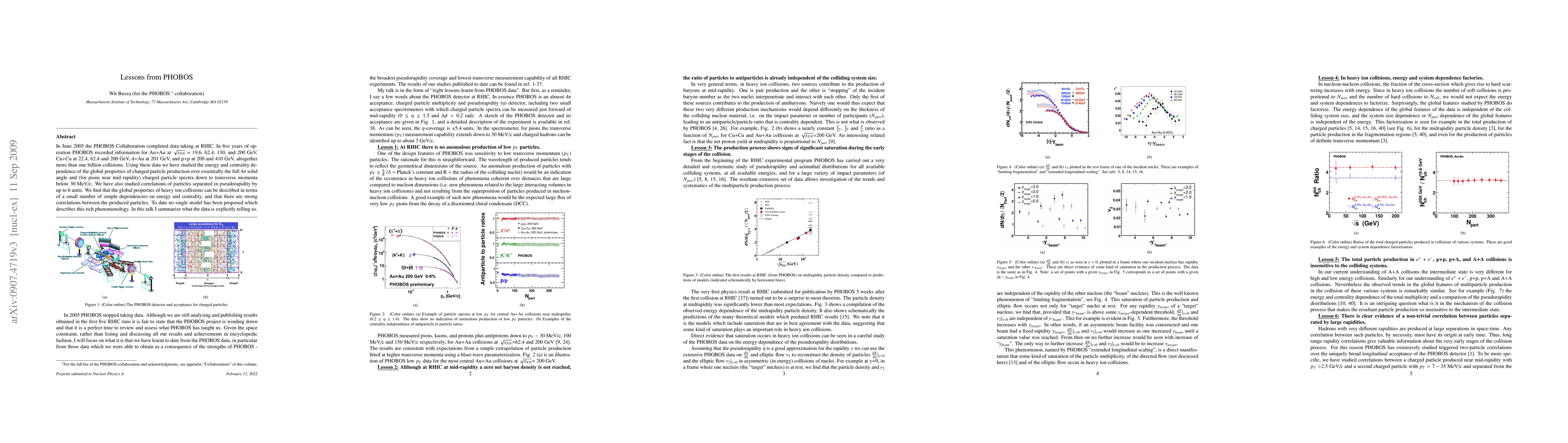 In June 2005 the PHOBOS Collaboration completed data taking at RHIC. In five years of operation PHOBOS recorded information for Au+Au at $\sqrt{s_{NN}}$ = 19.6, 62.4, 130, and 200 GeV, Cu+Cu at 22.4, 62.4 and 200 GeV, d+Au at 201 GeV, and p+p at 200 and 410 GeV, altogether more than one billion collisions. Using these data we have studied the energy and centrality dependence of the global properties of charged particle production over essentially the full 4$\pi$ solid angle and (for pions near mid rapidity) charged particle spectra down to transverse momenta below 30 MeV/c. We have also studied correlations of particles separated in pseudorapidity by up to 6 units. We find that the global properties of heavy ion collisions can be described in terms of a small number of simple dependencies on energy and centrality, and that there are strong correlations between the produced particles. To date no single model has been proposed which describes this rich phenomenology. In this talk I summarize what the data is explicitly telling us.