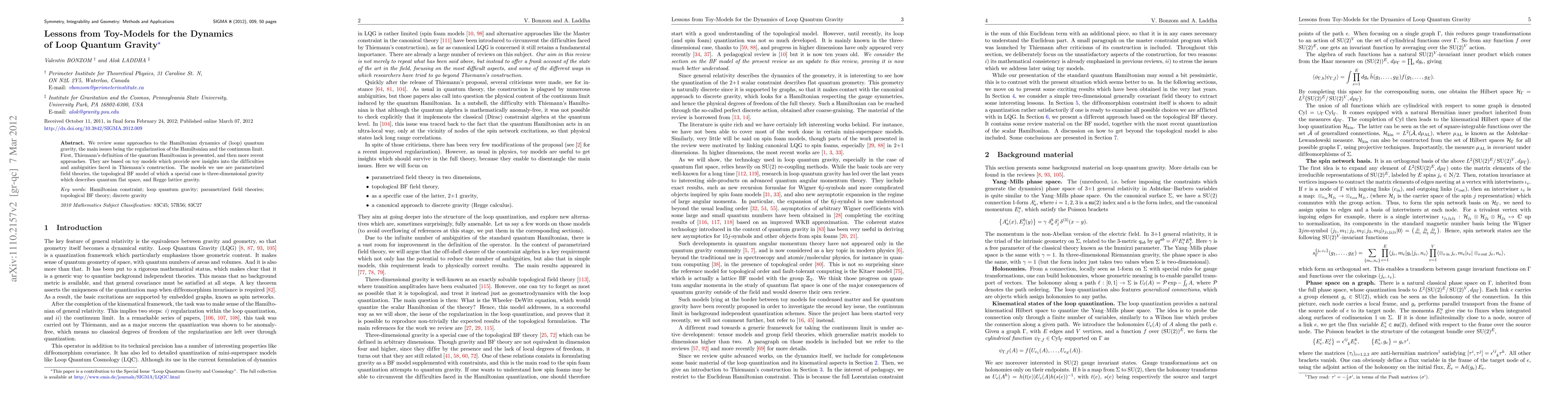 We review some approaches to the Hamiltonian dynamics of (loop) quantum gravity, the main issues being the regularization of the Hamiltonian and the continuum limit. First, Thiemann's definition of the quantum Hamiltonian is presented, and then more recent approaches. They are based on toy models which provide new insights into the difficulties and ambiguities faced in Thiemann's construction. The models we use are parametrized field theories, the topological BF model of which a special case is three-dimensional gravity which describes quantum flat space, and Regge lattice gravity.