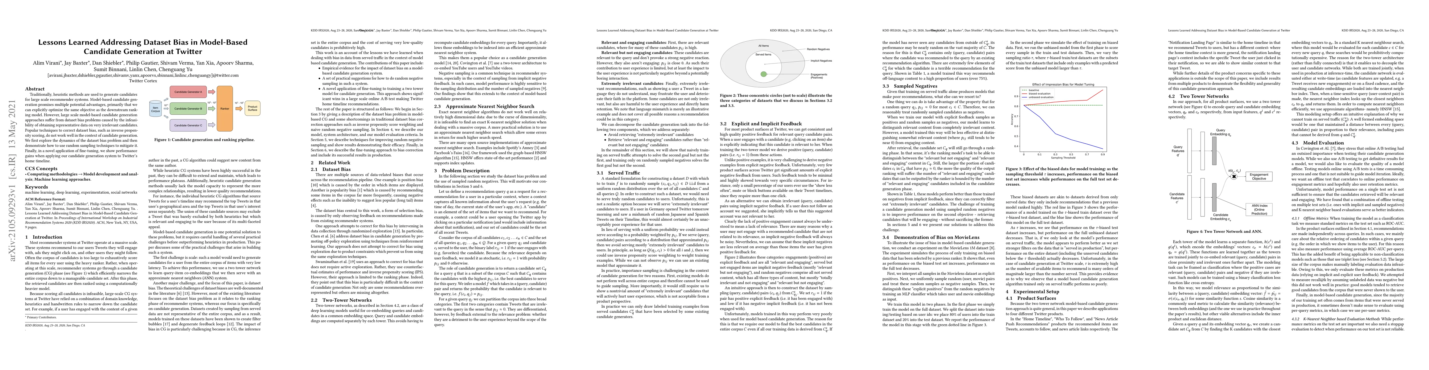 Researchers address dataset bias in model-based candidate generation for recommender systems, introducing a novel approach using random sampling techniques to mitigate bias and achieving performance gains in Twitter's home timeline.