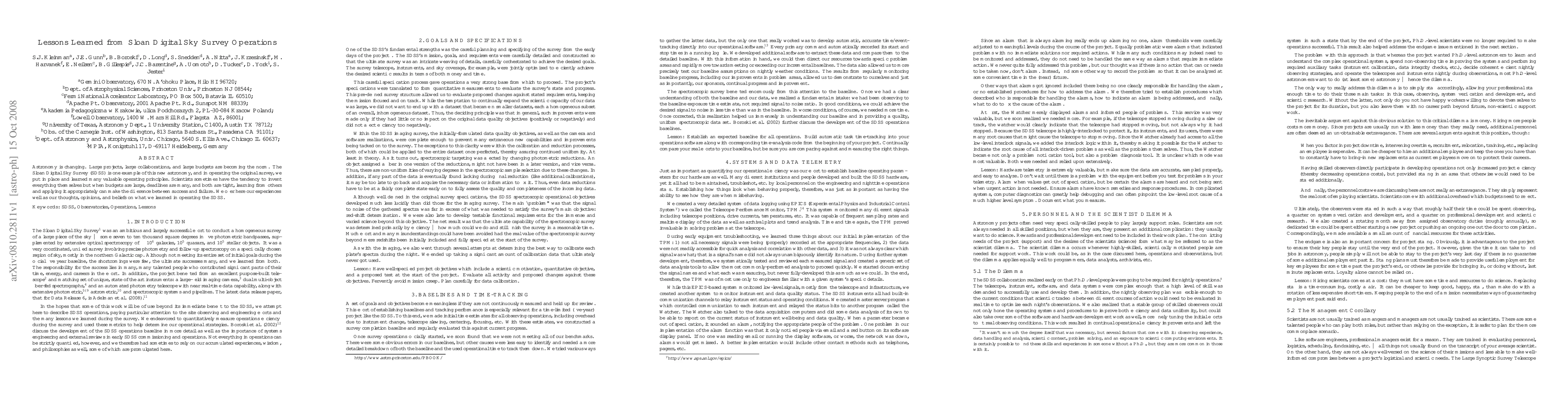 The Sloan Digital Sky Survey (SDSS) highlights the importance of adopting established operating principles in large-scale astronomy projects to navigate the challenges of extensive budgets and tight deadlines. The authors share their insights and lessons learned from the SDSS operation, emphasizing the value of learning from others to ensure success.