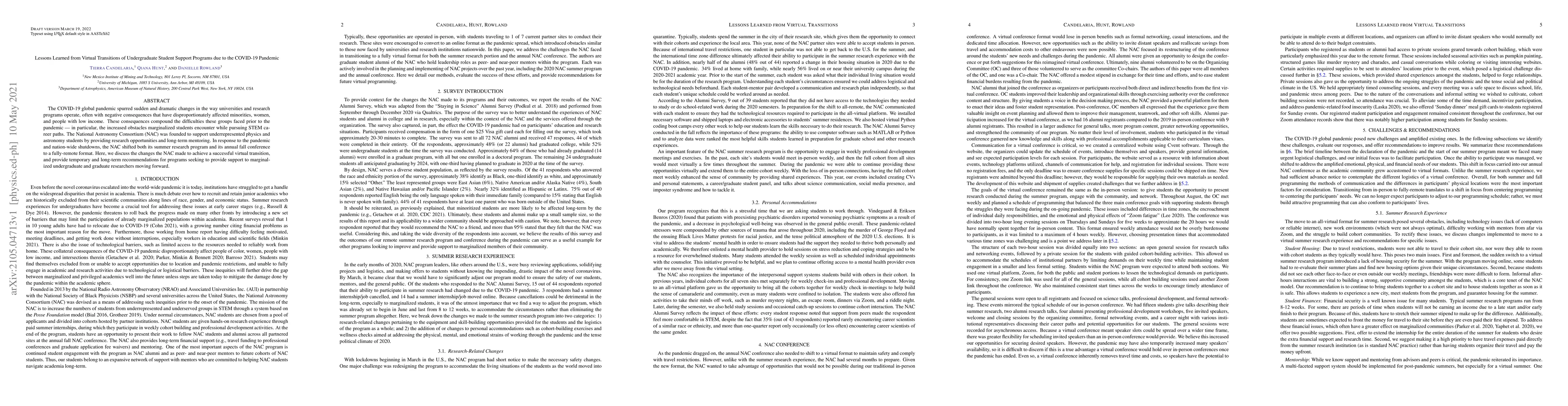 The National Astronomy Consortium (NAC) transitioned its programs to virtual formats during the COVID-19 pandemic, highlighting lessons learned to support underrepresented STEM students. The NAC offers recommendations for both temporary and long-term adaptations to better serve marginalized researchers in future transitions.